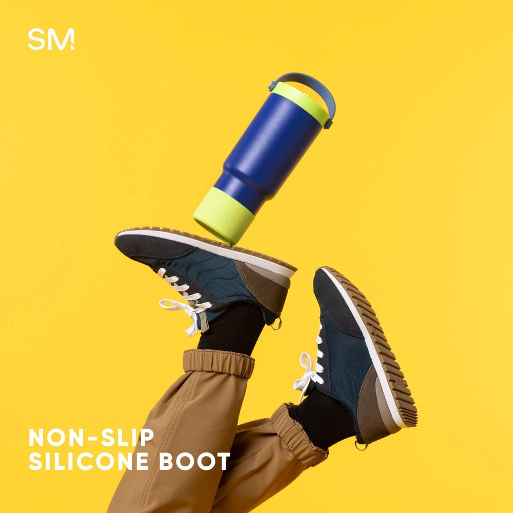 The Trek Pivot comes in a variety of fun colors and is perfectly curated for life on the go. Designed with everyday convenience and adaptability in mind, this tumbler features a multi-use lid to tailor each drinking experience as desired. The Trek Pivot comes with a handle-lid for easy transport and a silicone boot to help soften landings, enhance stability on surfaces, and help maintain its sleek appearance. This water bottle is made from 18/8 stainless steel to keep drinks cold or hot for hours and fits easily into standard cupholders, making it a perfect companion for life on the go. Multi-Use Lid: Featuring interchangeable lid pieces, you can choose your preferred sipping method - straw or chug - and easily swap out the sipping component within the lid at any time. Functional: Cupholder friendly with an ergonomic handle design, allowing for comfortable grip and ease of transport when pivoting from daily activity to another. Double Wall Insulation: Keeps beverages cold or hot for hours. Durable: Made of premium 18/8 stainless steel, and comes with a silicone boot to soften landings and enhance stability. Limited & Patent Pending