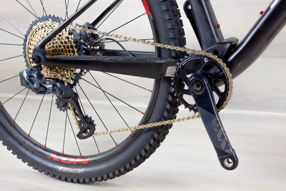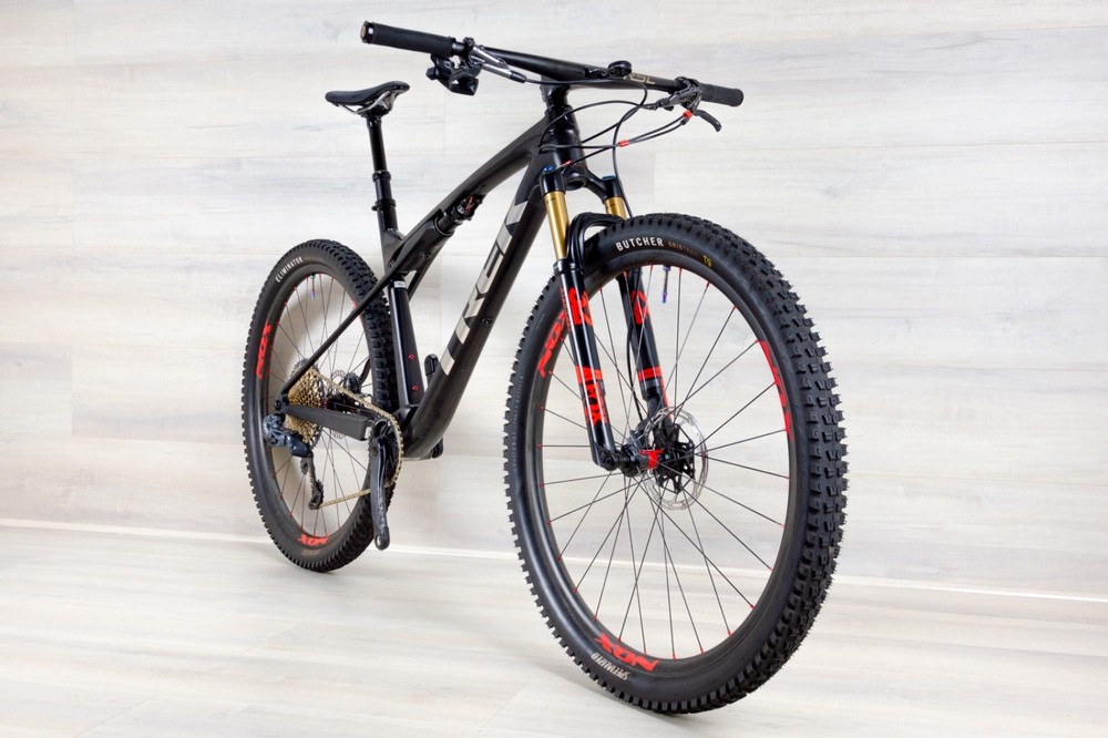 Trek Supercaliber 9.9 GEN 1 Sram XX1 AXS - X-Large •Material - carbon •Brakes - Shimano XTR hydraulic •Brand - Trek •Model - Supercaliber 9.9 XX1 •MSRP - 10499$ •Weight - 22.8lb •Cassette - SRAM Eagle Gold 10/52 •Chainrings - SRAM eagle 34T •Charger - yes •Components group - SRAM XX1 AXS 12sp •Crank - Sram XX1 175mm carbon •Drivetrain - 1x12 •Fit Range - 5.11 to 6.4 ( approx ) •Fork - Fox 32 Step-Cast Kashmia gold coat •Fork travel - 100mm •Front derailleur - •Miles - 1200-1500 ( approximately and depending on the frame condition and components ) •Rear derailleur - SRAM XX1 AXS 12 speeds •Rear shock travel - 60mm •Seat post - FOX dropper seat post •Stem - Bontrager 90mm -9 •Tires - Specialized Butcher 2.3 front and Eliminator 2.3 rear •Wheels, material - NOX carbon rims, DT Swiss 240s hubs •Tubeless compatibility - ubeless •Handlebars - Bontrager RSL one piece carbon •Saddle - WTB •Mechanic notes: Pre - Owned, good shape. The bike like any MTB that sees real trail time, there are some cosmetic marks from regular use (showed on pictures).
