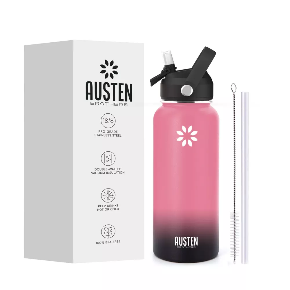 🔥Superior Material: The insulated water bottle is made of premium 18/8 stainless steel which is BPA free and non-toxic. It will never leave a metal taste or rust. The powder coating exterior finish ensures a better grip. 🔥Vaccum Insulation Proctection: The double wall insulation makes the water bottle sweat-free. Insulated water bottle is crafted with double-wall vacuum insulation technology that conduces to keep drinks warm for 12 hours and cold for 24 hours. 🔥Leak-proof and shatter-proof: The bottle is absolutely leak proof and shatterproof, making it the choice for rough-and-tumble use. BPA-free silicone rubber on each lid ensures no leak, no plastic smell. Condensation never appears on the steel bottle.It assures that you stand out with a very durable and elegant bottle. 🔥Travel Friendly: New Straw Lid with handle makes the bottle so easy to take with you no matter where you go and the straw top means no risk of spillage. It is not only suitable for your own use in many scenarios: School, family, work, gym, sports, travel, outdoor, meanwhile, its fashion appearance is also suitable for as a birthday present,Christmas gifts, for your parents wife, friends, colleagues.