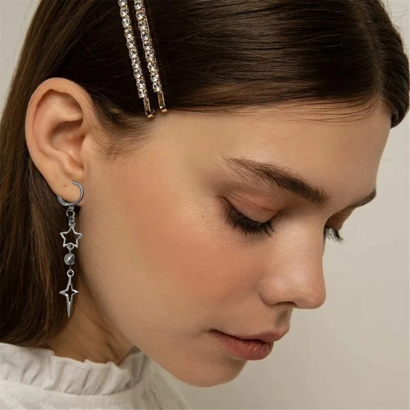Features: and high Make a statement with these punk star earrings. The hollow heart and star drop ear hooks add a unique touch to any look. Crafted from high alloy, these silver colored earrings are durable and to tarnish. They will maintain their edgy appeal for a long time. Designed for women, ladies, girls, and even children, these earrings are suitable for anyone who wants to rock a trendy and fashionable look. Wear these versatile earrings on any occasion, whether it's a casual outing or a special gathering. They elevates your and add edgy twist. your unique with these eye catching earrings. They make a for yourself or someone special, allowing you to showcase your individuality. Specifications: Alloy Size: approx.7cm/2.76in Color: As the pictures shown Quantity: 1 Pair Package Includes: 1 Pair x Earrings note: Please allow 0-1cm error due to manual measurement. please make sure you do not mind before you bid. Due to difference between different monitors, the picture may not reflect the actual color of the item.
