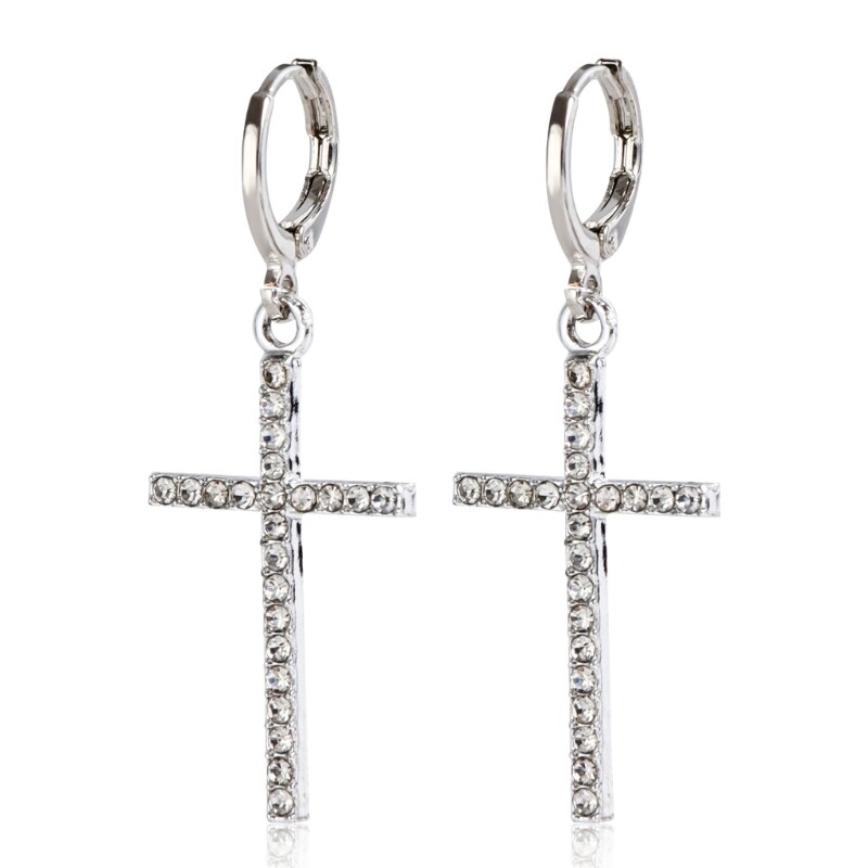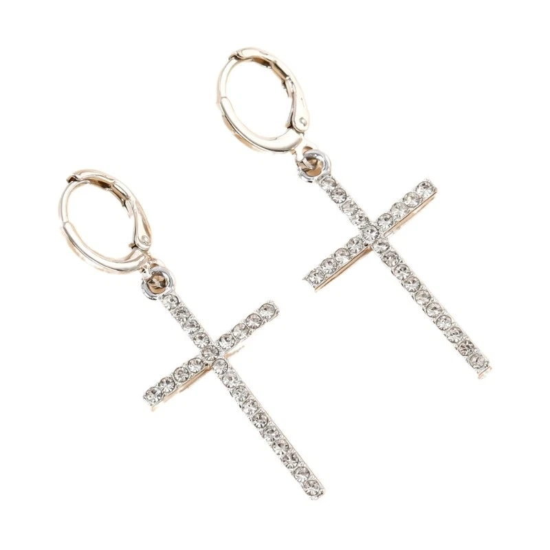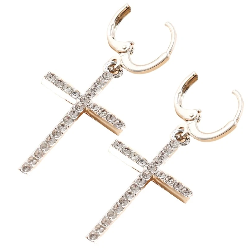 Trendy Geometric Metal Cross Heart Pendant Earrings for Women’s Adornment