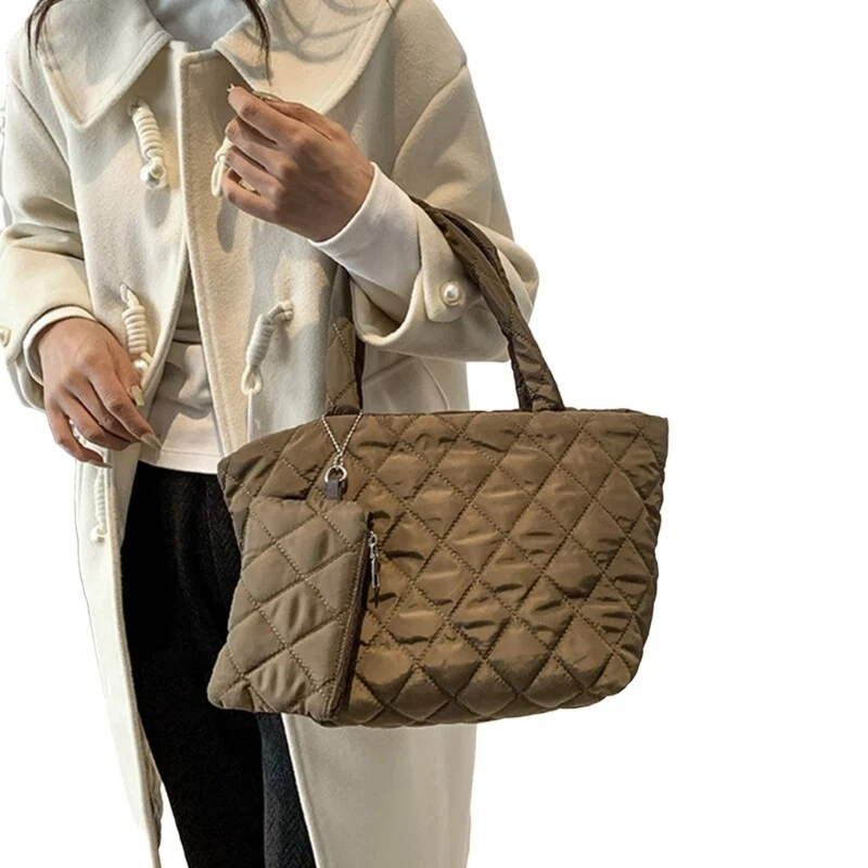This handbag is a must-have for anyone who loves both style and functionality! Lightweight yet durable, it keeps your essentials warm and secure with its cozy down-filled interior. Perfect for travel, outdoor adventures, or daily errands, it offers plenty of storage with multiple pockets and a handy carry design. The nylon fabric is tough enough for any activity, making it ideal for women on the go. Whether you're hiking, shopping, or commuting, this bag keeps everything organized while looking effortlessly chic. A fantastic blend of practicality and trendiness!
