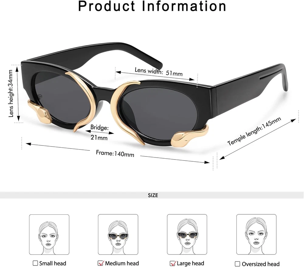 Product Description The video showcases the product in use. The video guides you through product setup. The video compares multiple products. The video shows the product being unpacked. 1 OCCASION 2 MUSIC FESTIVAL OUTFIT 3 DRIVING SELFIE 4 STREET STYLE 5 SUMMER LOOK 1 DETAILS 2 IMFORMATION 3 FUNCTION AP3649 NEW STYLES Snake Design Butterfly Rectangle Lens Shape Square Non-polarized Polarized Lens Non-polarized Metal Frame Material Metal Medium Item Size Large Snake Design Cat Eye Rectangle Lens Shape Square Non-polarized Polarized Lens Non-polarized Metal Frame Material Plastic Medium Item Size Large Snake Design Pen Nib Rectangle Lens Shape Square Non-polarized Polarized Lens Non-polarized Metal Frame Material Plastic Medium Item Size Medium Snake Design Snake Rectangle Lens Shape Wrap Around Non-polarized Polarized Lens Non-polarized Metal Frame Material Metal Medium Item Size Large AP3678 AP3660 AP3680 AP3652