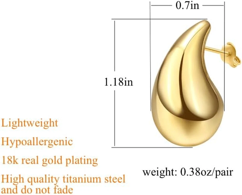Store New Arrivals Add to Favorite View Feedback Contact Fast deliveries to the customer's home Quality customer service John Make the customers happy! Teardrop Chunky Earrings for Women Trendy Hoop Earring Set Earring Dupes, Fashion Gold Large Drop Earrings Description The shape of this chunky earrings set is drop-shaped and chic, which can enhance your taste and attract attention. This 2-piece set comes in gold and silver bicolour and is suitable for any occasion. In addition, this is a new model for 2023 and is a great gift for ladies. Gem Type No Gemstone Color 01 Teardrop-Gold Material Titanium Metal Titanium Department womens ABOUT US We offer the best prices around on high quality products. Our E-store includes media such as books, movies, music and games while offering electronics, toys, sporting apparel, clothing, tools, general home, garden items and more. SHIPPING We are always working hard to ensure your package arrives as soon as possible. Please understand that some factors like weather, high postal traffic, and the performance of shipping companies are outside of our control. We offer free shipping to the lower 48 states and ship within 2 business days of payment, usually sooner. We do not accept P.O. Boxes. Please provide a physical address. For shipping outside of the continental USA, we only use eBay's Global Shipping Program. The item is shipped to KY and then sent to the rest of the world. International customers are responsible for all duties and taxes. Continue to 'check out' to calculate costs for shipping the item to your country. Messages regarding eBay's Global Shipping Program MUST be directed at eBay EXCLUSIVELY. RETURNS We offer a 30-Day Return Policy on items in which you are not completely satisfied with. You have the option of a full-refund or an exchange of the item. No returns are available on items shipped outside of the USA PAYMENT We accept PayPal. CONTACT US This page content is yet to come Please ad us to your favorite seller and visit again later Thank You CUSTOMER SATISFACTION We try our very best to make sure every customer is completely satisfied. If there's a problem, message us! We're happy to help. WE ACCEPT