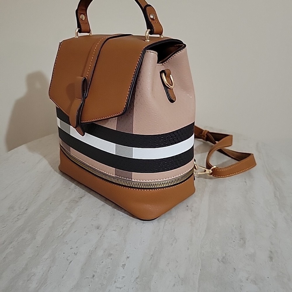 This stylish backpack is perfect for any woman on-the-go. With a spacious interior and multiple pockets, it's perfect for carrying all your essentials. The exterior is made of durable nylon and features a vibrant multicolor design. The straps are made of man materials for added comfort. This medium-sized bag is ideal for everyday use and is sure to complement any outfit. Whether you're running errands or heading to work, this bag is a must-have.