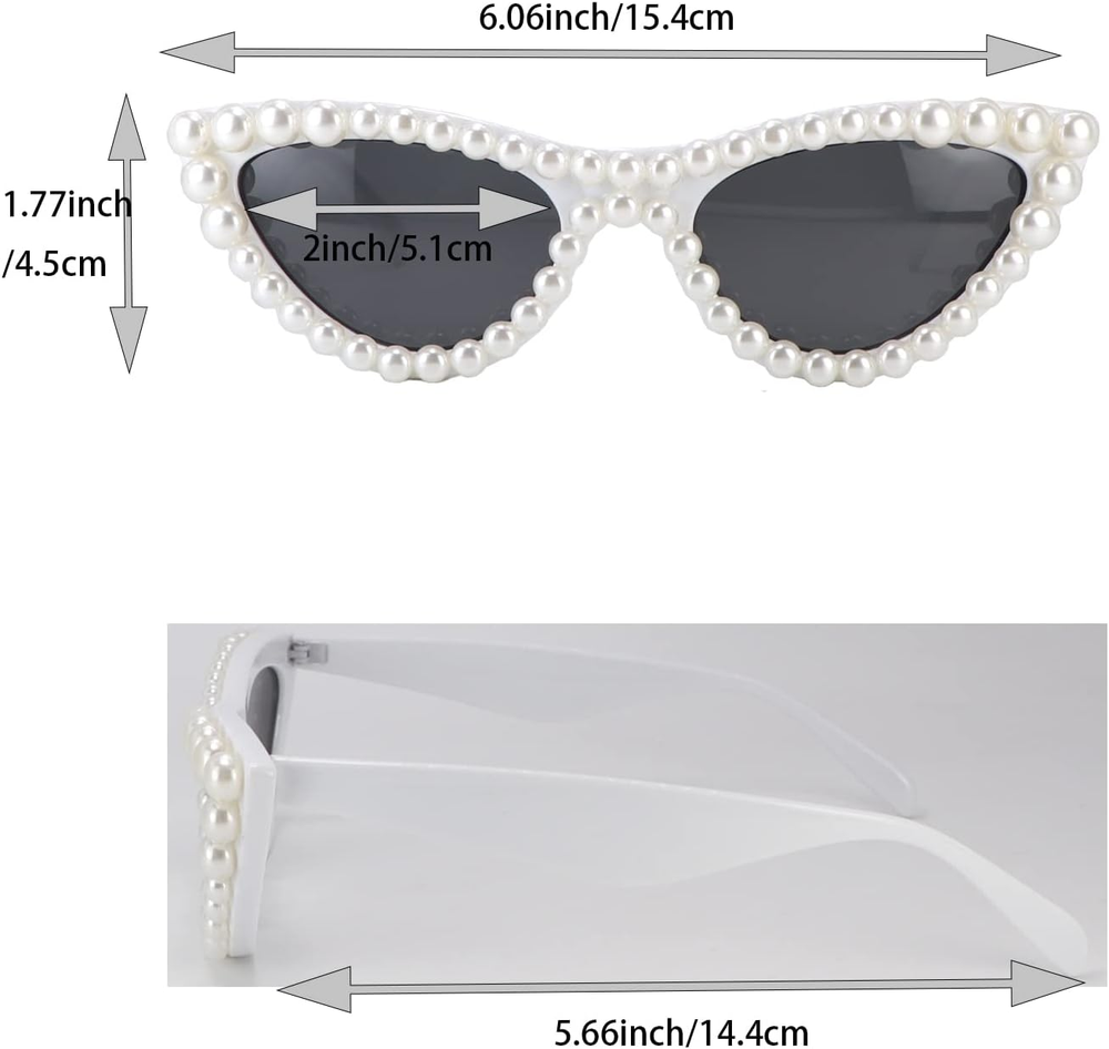 These sunglasses are so stylish and fun! The pearl detailing adds a chic touch, and the cat-eye shape is super flattering. They feel lightweight yet sturdy, and the lenses provide great UV protection. Perfect for adding a trendy, feminine vibe to any outfit—love them!