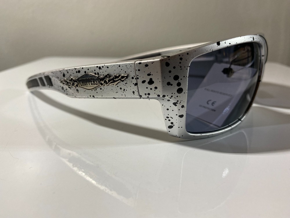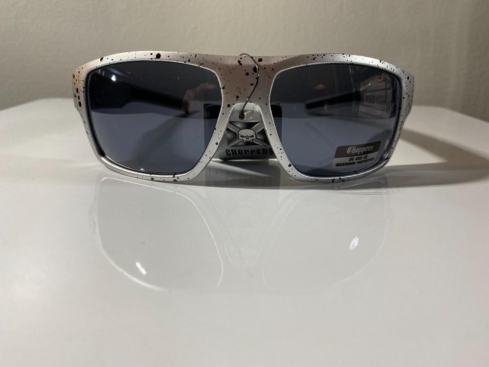 Men's popular riding sunglasses with speckled color frame and smoke black lenses. Great price.