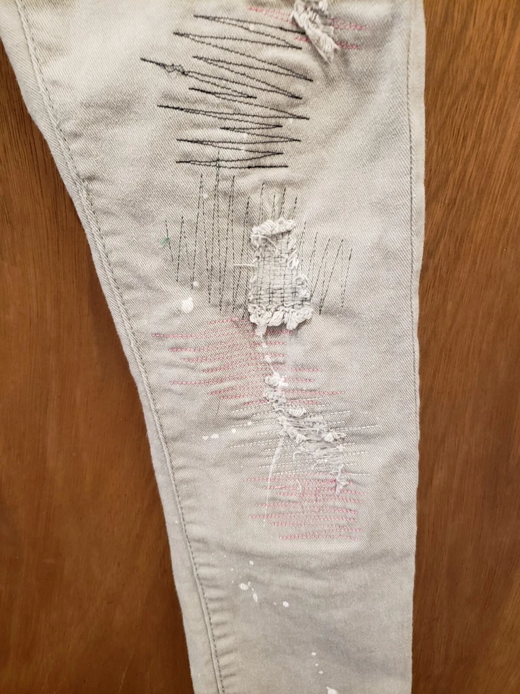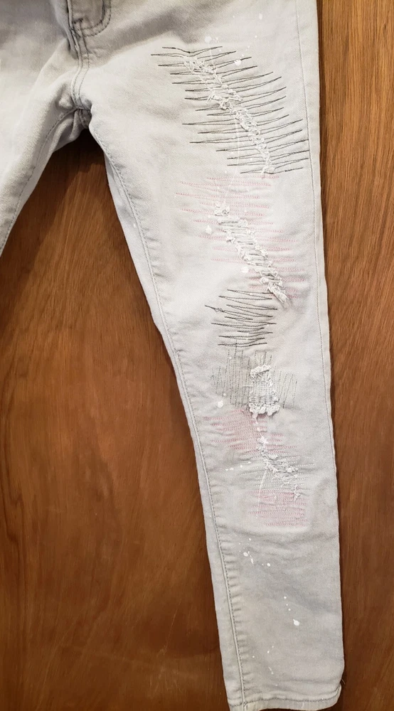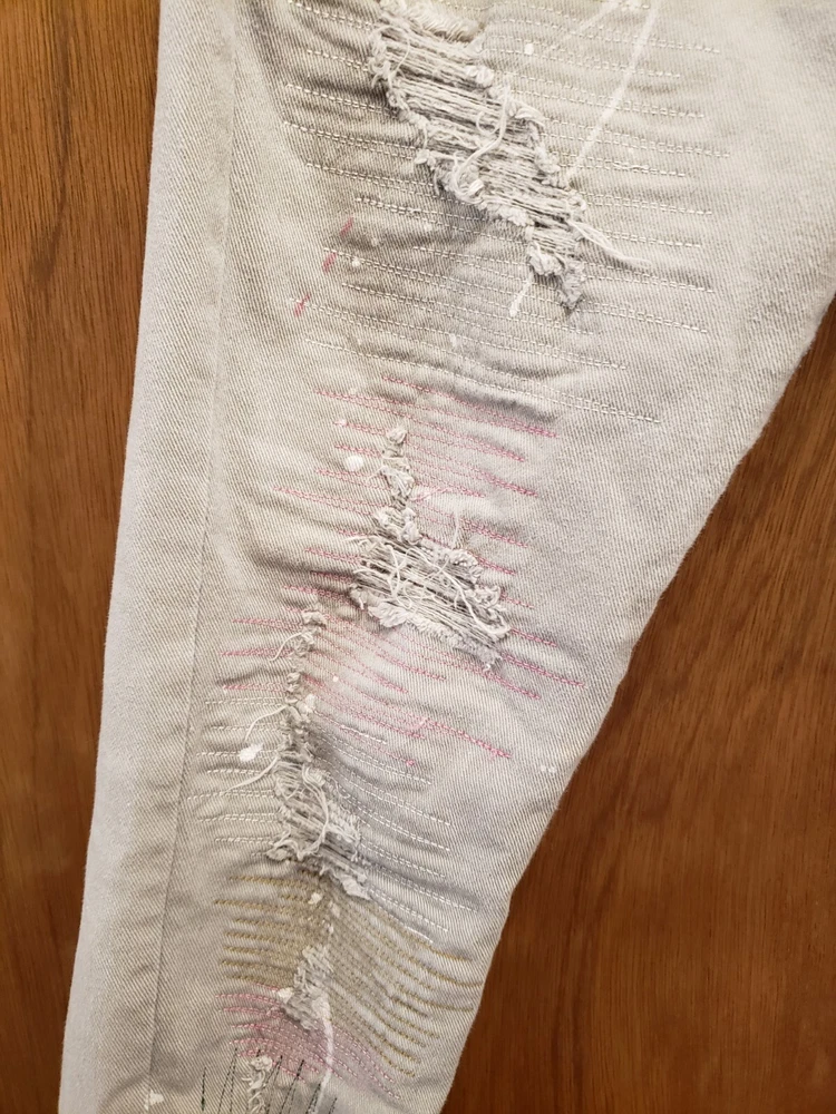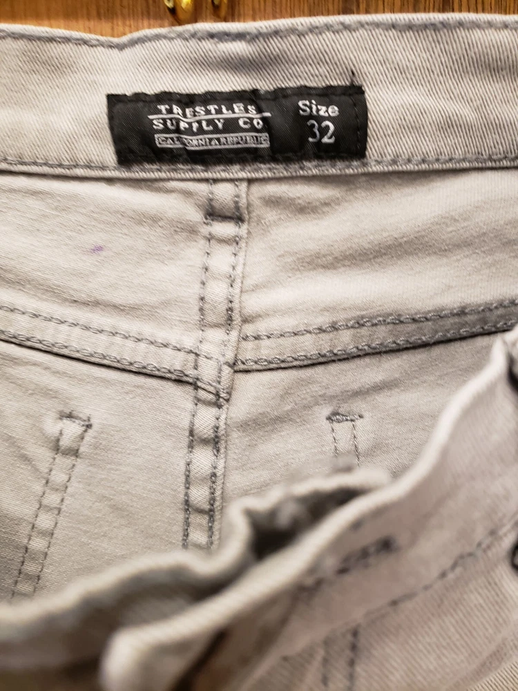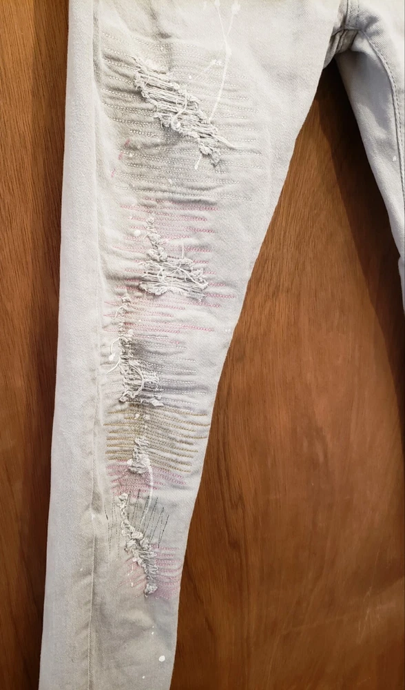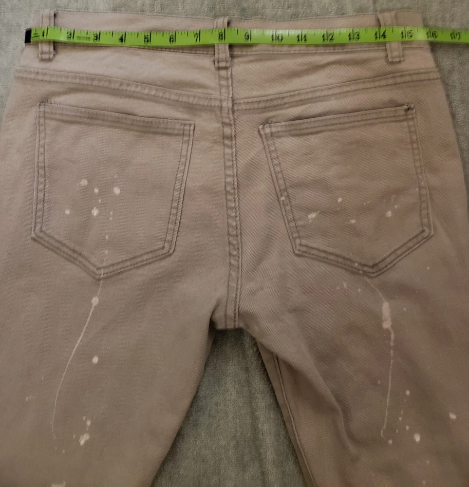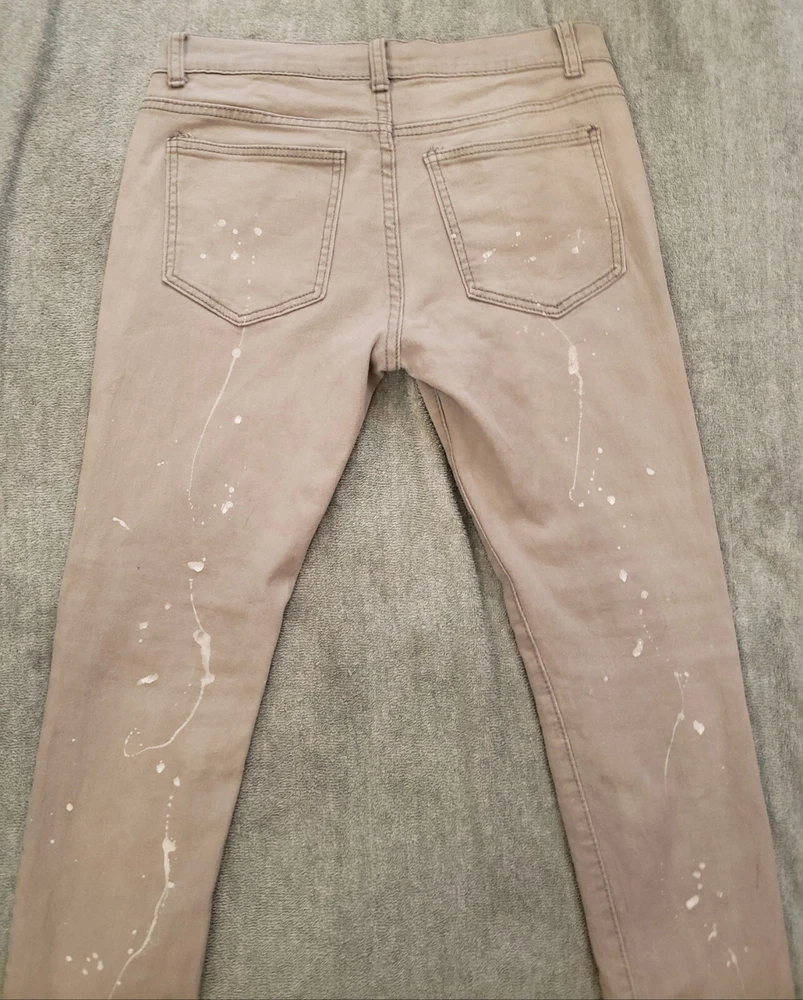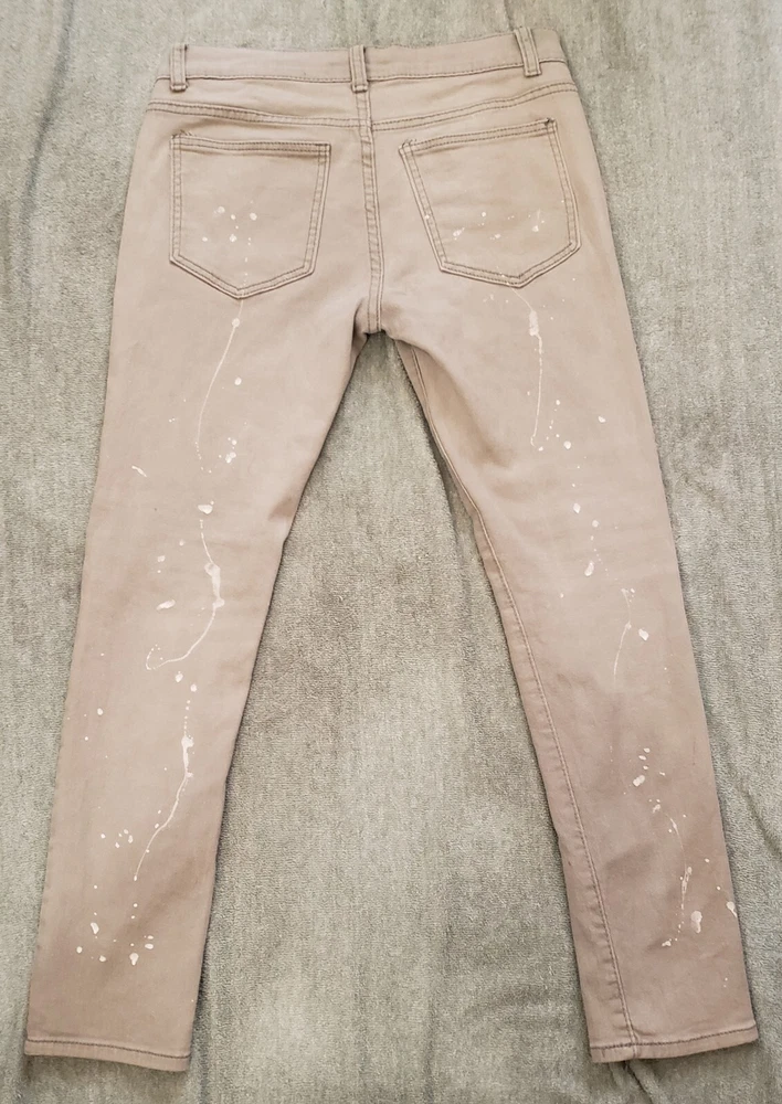 Personalize: No Inseam: 32 in Fit: Skinny Size Type: Regular Size: 32 Closure: Zip, Button Handmade: Yes Type: Jeans Country/Region of Manufacture: China Department: Men Accents: Paint Spatter Model: Trestles. Supply Co Material: Cotton Vintage: No Features: Pockets, Comfort, Elastic Waist, Stretch Season: Fall, Spring, Summer, Winter Color: Beige Rise: Mid (10-12 in) Style: Skinny Pocket Type: 5-Pocket Design Fabric Wash: Light Theme: Hip Hop Waist Size: 32 in Pattern: Paint Splatter Garment Care: Machine Washable Fabric Type: Denim Brand: Trestles