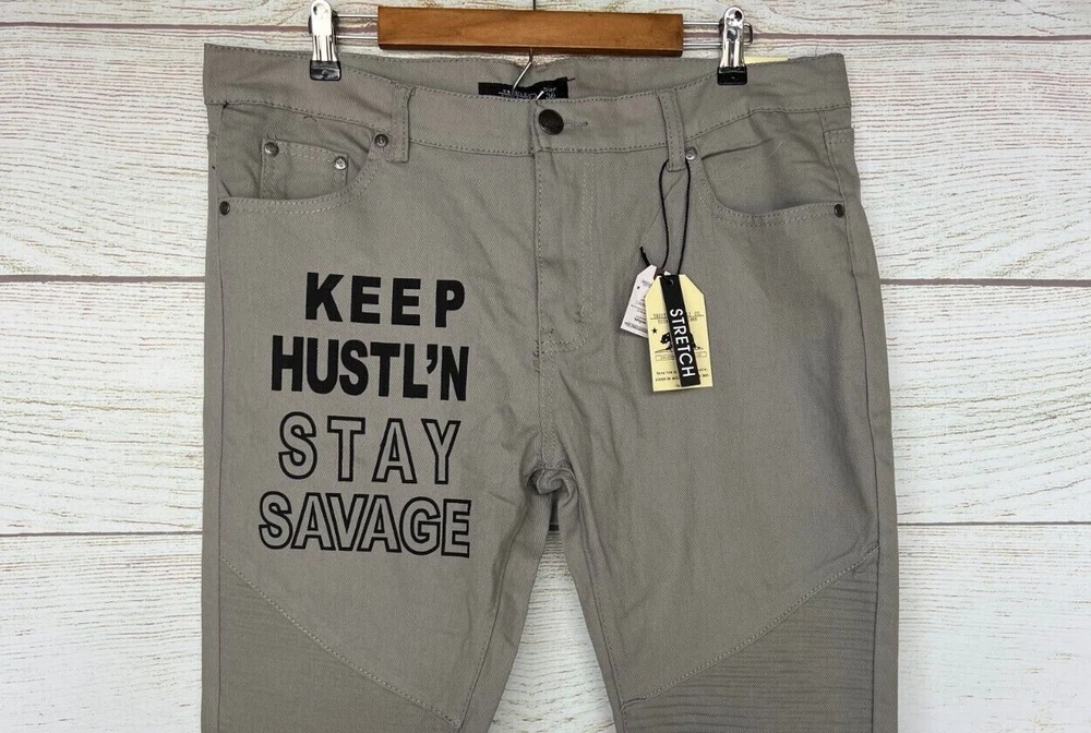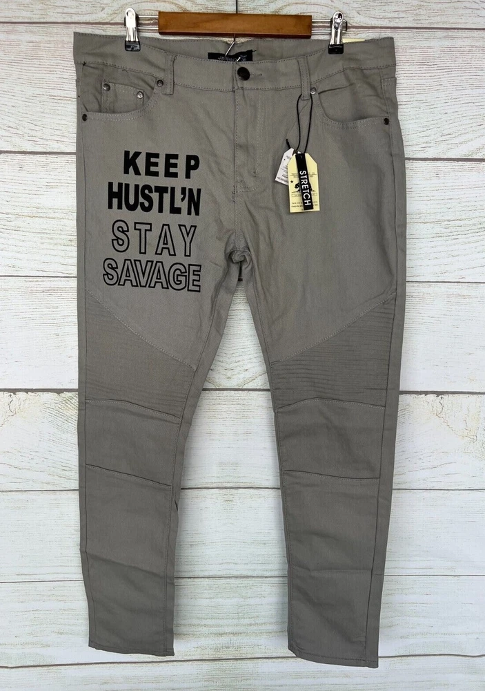 Trestles Thin Jeans Mens 32X32 Grey Keep Hustl'n Canvas Style Stretch Skinny New