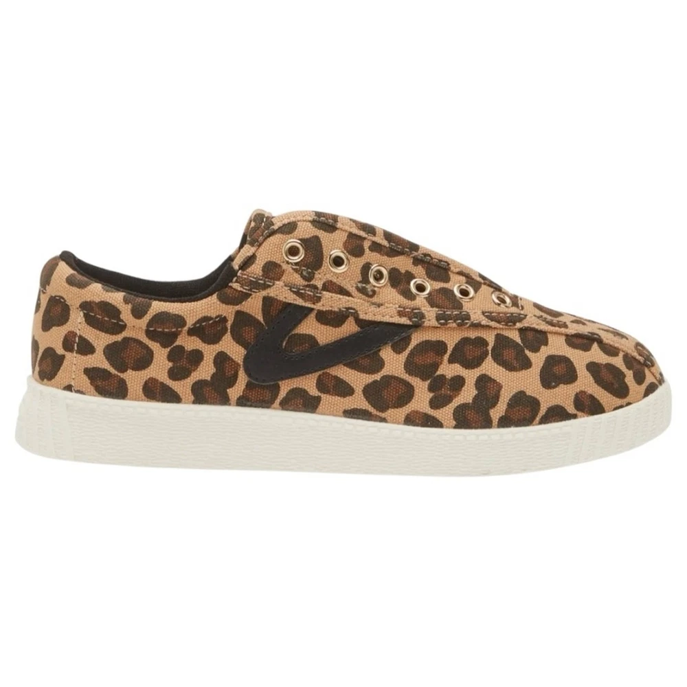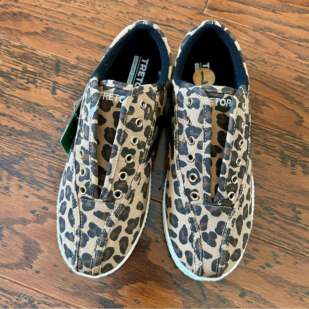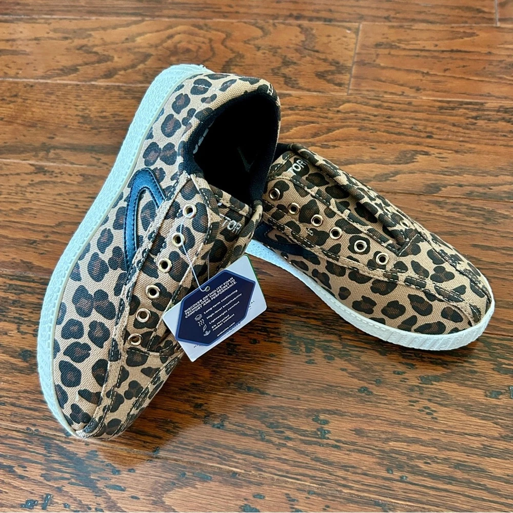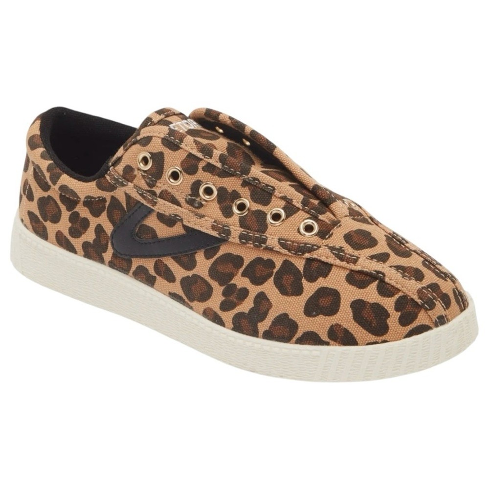 Tretorn No Lace Leopard Print Sneakers Brown/black - Size US 7 NEW with original tags - $65 Retail With a padded collar, this slip-on sneaker keeps you effortlessly comfortable all day on a cushioned footbed. Lightweight with high level breathability 5% recycled rubber content Antimicrobial Textile upper/synthetic lining/rubber sole Imported Tretorn Leopard Print No Lace Slip-on Sneakers Size US 7 NWT