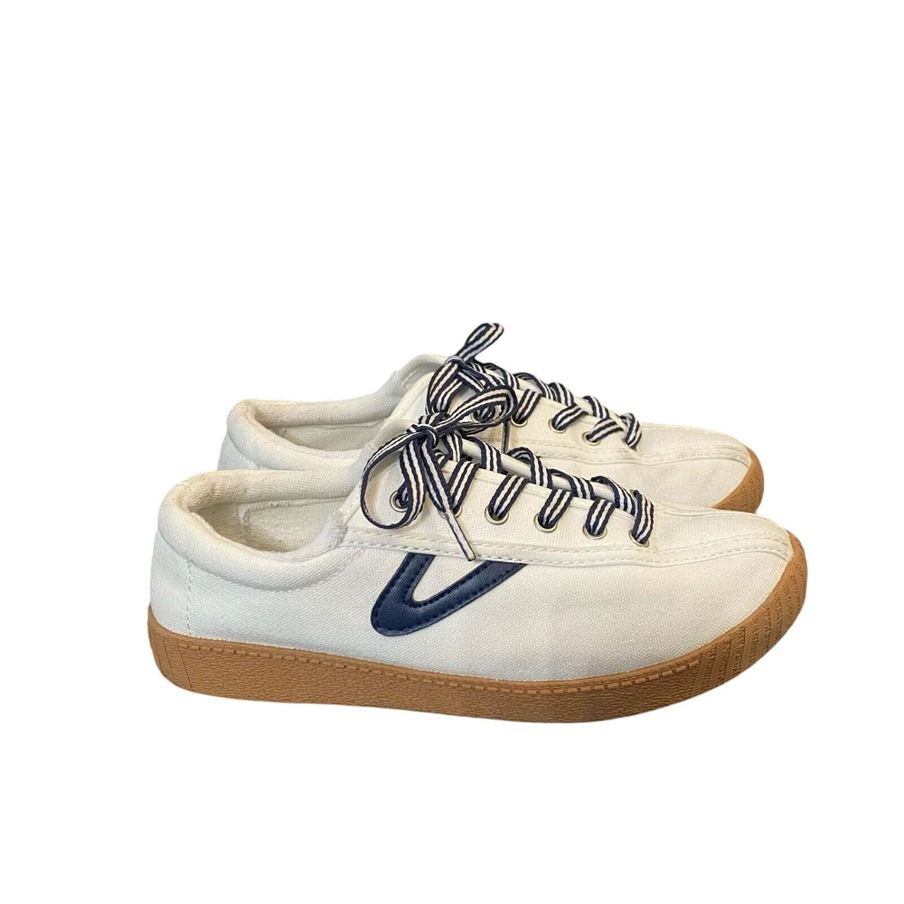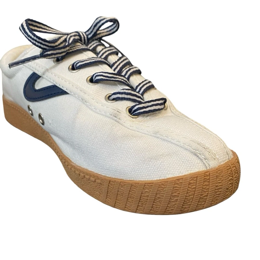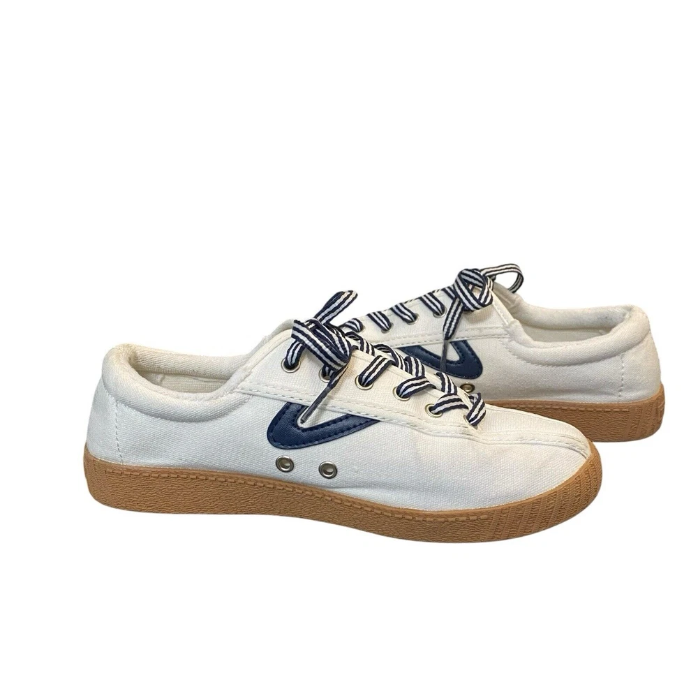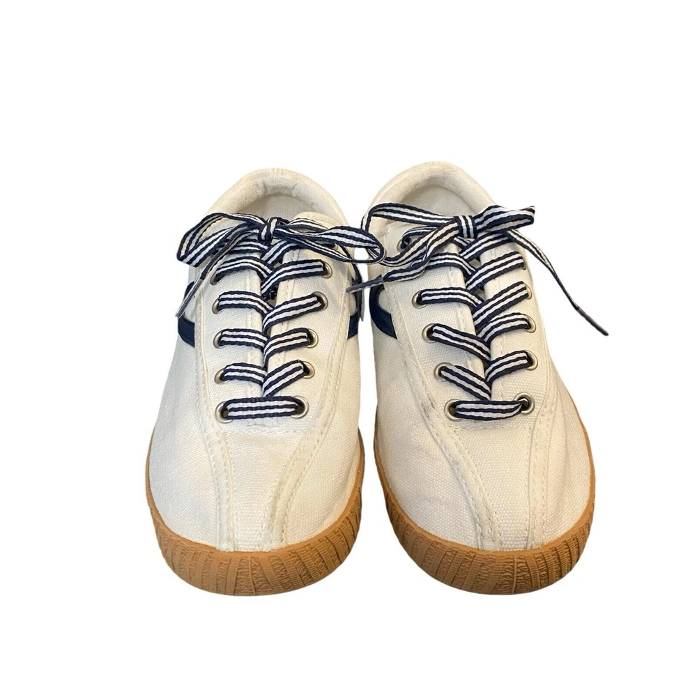 Tretorn Nylite Canvas White Navy Blue Gum Sole Lace Up Shoes Women’s US Sz 7.5