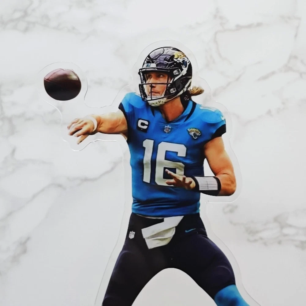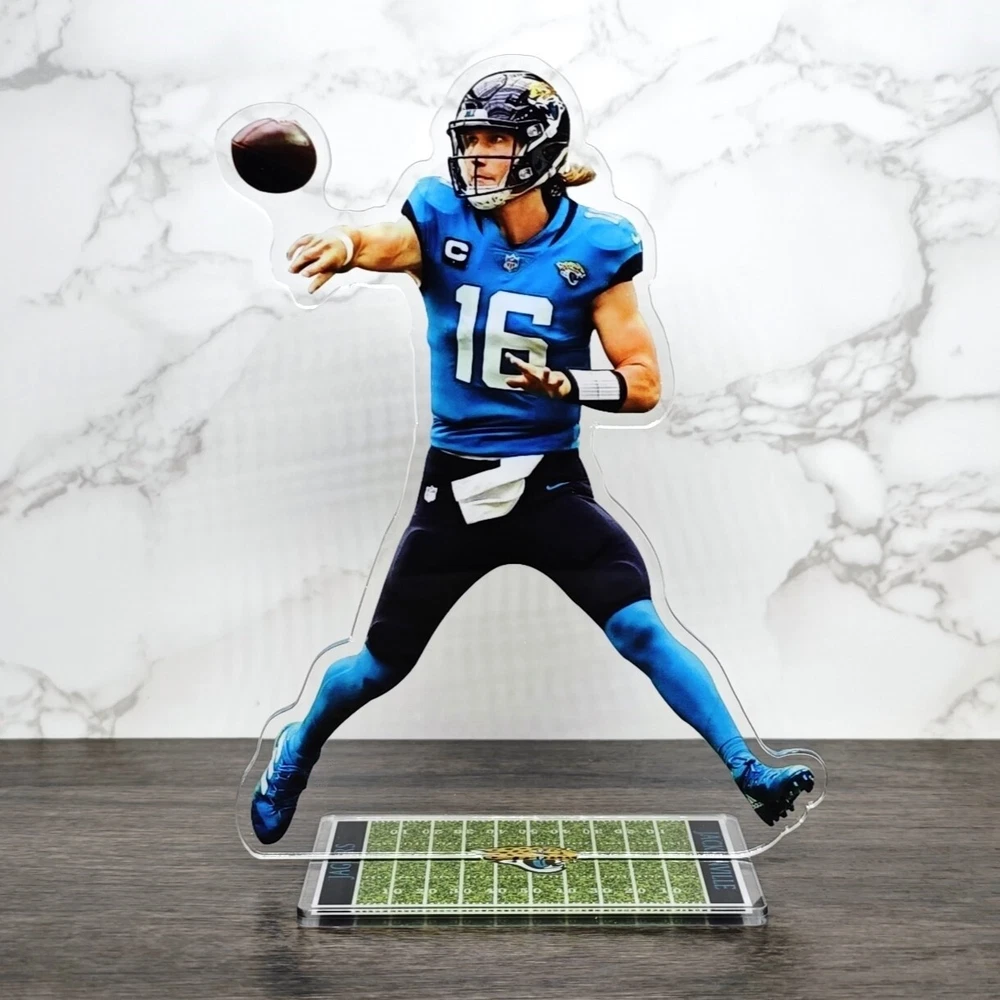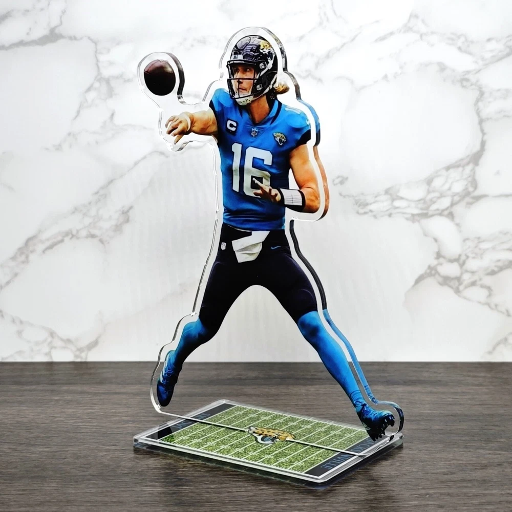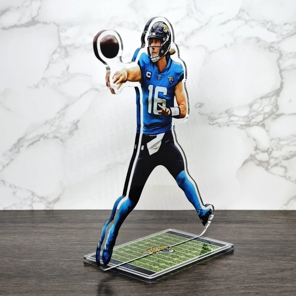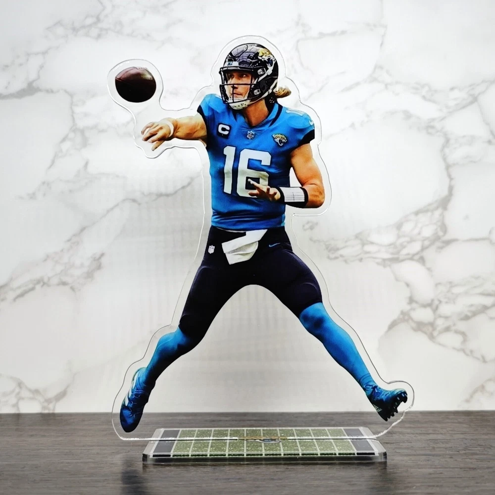 Item Details: Laser-cut 2D (Two Dimensional) acrylic standee Measure: Approx 6.4 inches tall Material: 100% Acrylic Add this to your never ending collection of football memorabilia. This laser-cut two dimensional figurine depicts your favorite player in action. Whether displayed in your home, office, for fan cave, this item is perfect for showcasing your love for football.