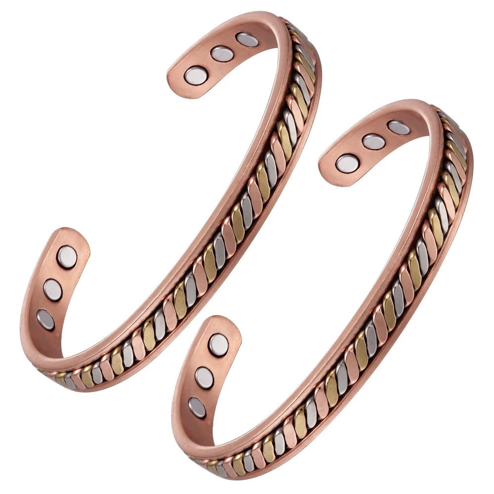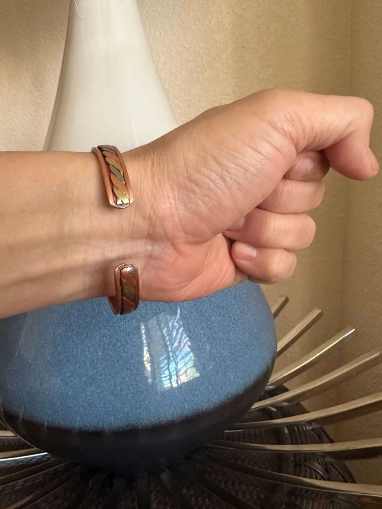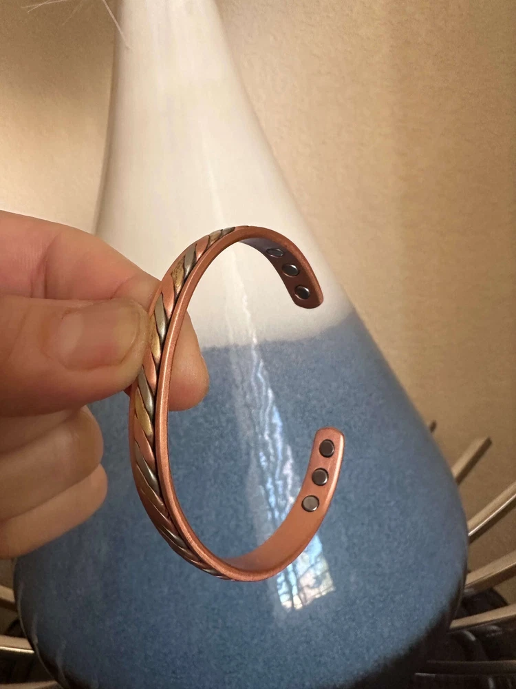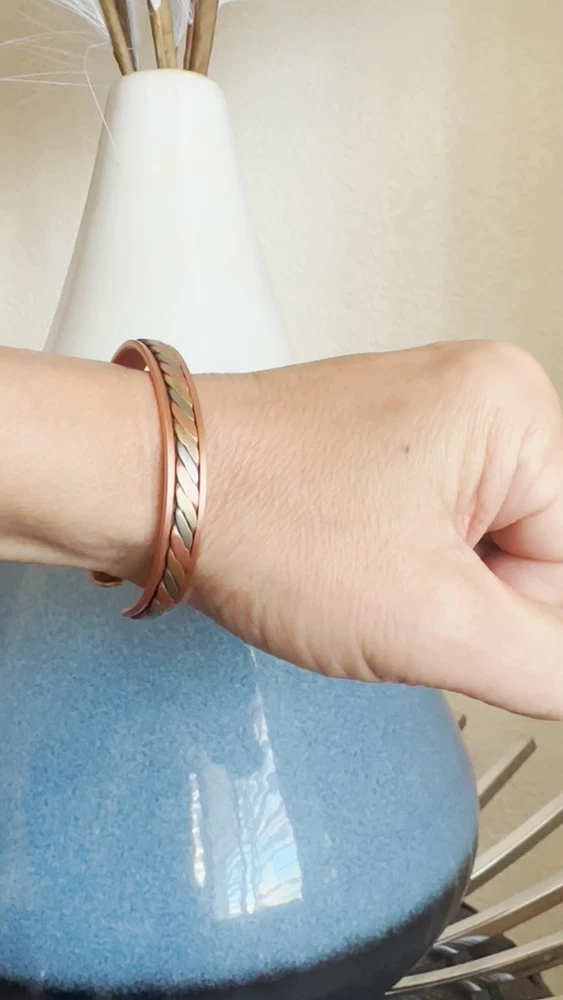 KEY TO GOOD HEALTH IS GOOD CIRCULATION...It works like Acupuncture without the needles! * BEST LOOKING, highest quality, Stylish Modern European Design and Precision Hand-Crafted Bracelets. Just wear it, it looks great and its therapeutic, what more could you ask for? Treat yourself and your loved ones. * Relieves Aches and Pain, Helps Arthritis pain, Improves Circulation, Reduces Inflammation, Boosts Immunity, Improves Balance, Stress & Anxiety relief (Makes you feel better) * Six (6) 5,000-Gauss magnets for 30,000 Gauss power! Pure 100% Copper bangle bracelet with strongest Neodymium magnets. They are 10X stronger than cheaper and weaker hematite magnets. * KEY BENEFITS- Our bracelets may help increase balance, strength, flexibility, and energy as well as increase blood circulation to help relieve aches and pain. It may help healing process and induces sense of well-being. It's perfect for people with active life style like runners, playing golf or sports. Great gift for yourself and your loved ones. Perfect Unique Gift for everyone! Try it, love it or 60 days money back guaranteed.