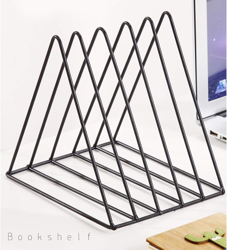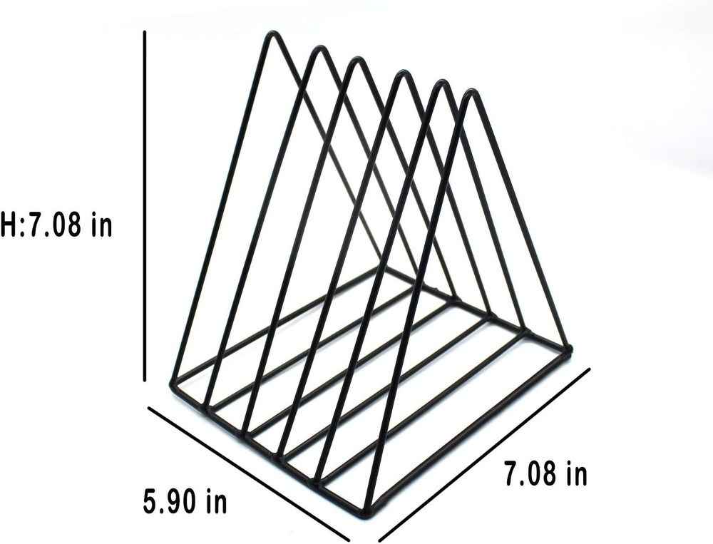 Triangle File Holder,5 Slot Metal Vinyl Record Stand Holder Magazine Newspaper Holder Photography Props for Office Home 1 Pc black Triangle File Holder: our magazine shelves are made of iron wire, durable. This folder shelf is a triangle shape, with strong stability, your files will never fall down. Beautiful appearance: our magazine shelf adopts simple nordic style, with simple and generous design. Beautiful appearance can be used as photography props for photographers. Take a beautiful picture for our triangle bookshelf. Widely used: our triangle bookshelf is mainly used to store all kinds of things, such as documents, magazines, books, records, newspapers, etc. With our triangle bookshelf, you can better save space and keep the desktop clean. Scene: you can put it in the study, living room, bedside, coffee shop, office and studio to add a touch of light to your space. Attention: Please check our size before purchasing Product Name: Nordic style magazine newspaper bookshelf Material: Iron Application: put all kinds of files, books and magazines, save space. Scene: office, studio, home