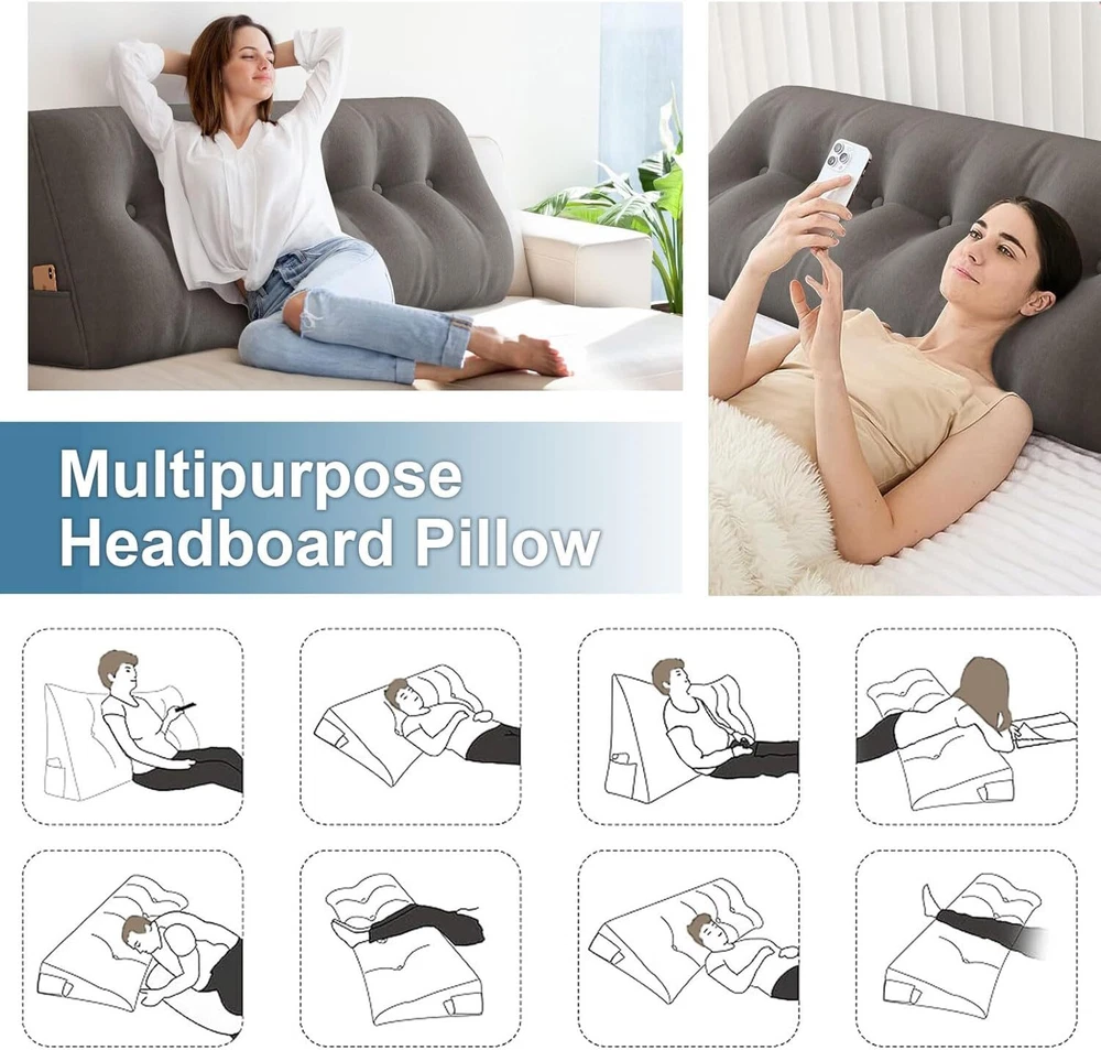 Description Similar Items Description Features: — Perfect curve: Can Be Used on Your Waist, the perfect fit the waist, effective to release of lumbar pressure; — The Pillows with buttons design, make the pillows look more full, three-dimensional stronger; — This is Supportive, Alternative, Adjustable Pillow,Multifunctional, Multipurpose, Multiuse pillow, Better Fit Propping Up, Inclined, Bolster, Slope, Angle, Body, Uplift, Lumbar, Headboard, Daybed, Waist pillow — This is bed wedge pillows for sleeping, is triangular pillow and decorative throw pillow, it's Easy to Wash cover, is Ultra Soft Solid pillows, Filled with High-quality PP Cotton, Good Elasticity and Durable; Feature: 【GREAT BACK SUPPORT】Our headboard wedge pillow provides excellent back, lumbar, and neck support while sitting up in bed, reading, and watching TV. The large headboard backrest support pillow fits perfectly to your mattress. 【PREMIUM Material】The pillow is designed with a breathable soft and durable cover that complements your home decor. The premium polyester fiber filler is plump enough to support your body 【SIDE STORAGE POCKET】With the side storage pocket, your can keep phone or other things within arm's reach. 【MULTIPURPOSE 】Our large triangular pillow is not just for the headboard; it can be used for various purposes and occasions. It is perfect as a bed headboard for maximum comfort while working, sitting, or playing on the bed. Use it on beds, daybeds, sofas, couches, floors, or in kids' playrooms to refresh your home decor. 【ULTIMATE COMFORT】Ergonomically designed for maximum comfort! If you experience discomfort or pain in your upper back and shoulders, our backrest positioning support pillow is here to help. The headboard cushion is soft yet supportive, providing relief from sore backs and orthopedic pains. 【EASY TO MAINTAIN】The removable cover make it easy to clean and maintain. Simply take off the cover whenever you need to wash it. Specification: Product Name: Wedge Pillow Features: Firm Support Season: Four seasons Shape: Wedge triangular pillow Size: 150*50*20cm/200*50*20cm Cover Material: Polyester (Velvet) Fill Material: Polyester Fiber Color: Gray/Light Gray/Beige/Blue Package Included: 1x Wedge triangular pillow Note: 1.We provide clear pictures, measurements where possible. Please check as much as possible to make sure the item is the one that you need. 2. Please allow 0.5-1 inch difference due to manual measurement.(1inch=2.54cm) 3.The color of the actual items may slightly different from the listing images due to different computer screen, thanks for your understanding. Payment 1.We accept many methods of payment. 2.All major credit cards are accepted through secure payment processor PayPal. 3.We ship to your eBay or Paypal address. Please make sure your eBay and Paypal address is correct before you pay. Shipping 1.We ship to your eBay or Paypal. Please make sure your eBay and Paypal address is correct before you pay. 2.Items will be shipped within 1 business day when we received payment. 3.Delivery time depends on destination and other factors; 4.International buyers please note: a.Import duties, taxes and charges are not included in the item price or shipping charges. These charges are buyer’s responsibility. We will try our best to reduce the risk of the custom duties. b.Please check with your country's customs office to determine what these additional costs will be prior to Shipping: Free Shipping within the 48 States. We ship within the United States only. The term EXCLUDES the states of Alaska, Hawaii and all off-shore U.S. territories and possessions such as Puerto Rico, Guam and Virgin Islands. We do not ship to APO and FPO. Delivery Time: 3-8 business days (Varies by Destination) If you have any questions or problems with delivery, please contact us. Return & Warranty 30 DAY MONEY BACK SATISFACTION GUARANTEE | 360 DAY WARRANTY COVERS MANUFACTORY DEFECTS Returns are permitted and must be initiated by the buyer within 30 days from delivery date. In order to return an item, you must contact to request an Return Merchandise Authorization Number (RMA). No return package will be accepted without a valid RMA number. All products are covered by our warranty against defects. If an item proves to be defective, please contact to have the product repaired or replaced. Contact US Please send all correspondence through the eBay messaging system. Messages will be replied during business hours: 9AM to 6PM Pacific Time. Monday to Friday only (excluding Holidays). After hours messages will be replied on the next business day.