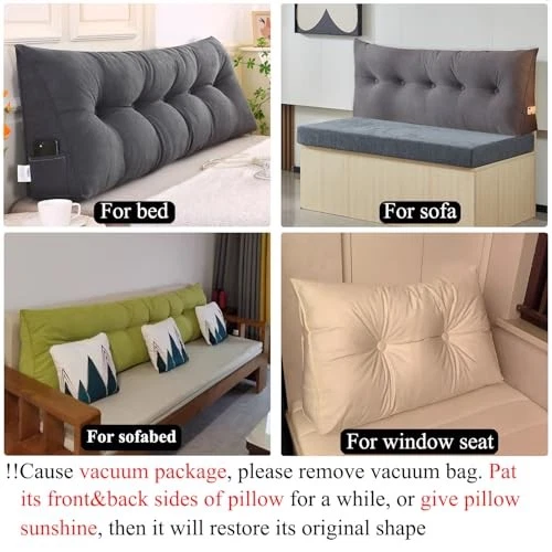 Menu 1. We require immediate payment. 2. We currently accept payment via eBay managed payments only. 3. Once payment is cleared, we will dispatch your shipment within 1-3 business days. Please refer to the "Shipping" tab for more information regarding shipping speed to your destination. Triangular Wedge Pillow headboard California King Size for Couch Large headboard Pillow with Removable Cover Back Rest Pillows for Sitting up in Bed Product description 【Wedge pillow headboard size】 Various size and color are available: Twin XL/Full/Queen/California King/King size 39/54/59/71/76x8x20 Inches. Before place order, please measure your bed, sofa or couch, then choose the appropriate size and color. Our wedge headboard pillows provides excellent back, lumber and neck support while sitting up in bed, reading and watching TV. 【Premium quality Material of headboard pillow】: large headboard pillow cover is made of premium quality linen fabric, breathable, delicate touch and wear-resistant; insert is filled with upgraded environmental-friendly 15D polyester fiber, excellent density and high resilience can give you long-lasting comfort when leaning against the headboard to reading or watching TV. 【Removable & Washable Cover】Backrest pillows cover are made With removable cover and detachable buttons, take the cover off whenever you need to wash it! The buttons creates the pillow with a more vivid and nice shape and makes the pillow detachable and washable. 【Super Comfortable】Bed pillows for sitting up in bed is ergonomically designed to support the natural bending of the back and provide the best comfort for your body. It can reduce the pressure on your back and shoulders, and provide proper support when you reading, watching TV, Resting etc. 【Multi-purpose Usage】Not only serves the purpose of a decorative headboard but it's also functional to lean on. This rest pillow can work as loveseat couch pillow, bay window backrest pillow, leg elevation pillow, floor knee pillow, headboard wedge pillow etc.Best used as a bed headboard for maximum comfort when working on a laptop, watching TV,sitting and playing games on bed. PLEASE MESSAGE US IF YOU HAVE ANY OTHER QUESTIONS, AND MANY THANKS FOR READING ALL OF THIS. Copyright ©#. All Rights Reserved.