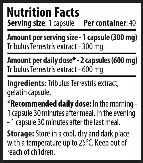 Tribulus Terrestris 40 capsules Bulgarian Tribestan DRY Extract NEW IMPROVED FORMULA GMP Certified Tribulus terrestris is a flowering plant that belongs to the Zygophyllaceae family that thrives in warm temperate and tropical climates in southern Europe, southern Asia, throughout Africa, and Australia. It grows in places with dry, arid climates and poor soil. It is also commonly burra gokharu, puncturevine, caltrop, cathead, yellow vine, goathead, and bindii. What are the benefits of Tribulus Terrestris? 1. It may improve muscle growth When it comes to boosting muscle growth, according to various research health experts ventured that by boosting the level of testosterone in the body, it could help gradually increase muscle mass. 2. It may boost libido Natural libido enhancers such as Tribulus has created a huge appeal simply because unlike libido enhancers in the market, it doesn't pose any serious side effects unless some of the ingredients in the supplement are contraindicated to one's current health condition. Tribulus Terrestris ' popularity is well known across the health and wellness community. Consquently, it is one of the best-selling natural testosterone boosting supplements today. Benefits of Tribulus Max Increases testosterone levels into the physiological range Improves strength and endurance in a natural way Helps to gain muscle mass faster and naturally accelerates fat burning Improves blood circulation Helps to lower the level of cholesterol in your blood Suitable for professional athletes who seek faster recovery Suitable for combination with other nutritional supplements and extracts Intake of 10 Tribulus Terrestris Nutrition Facts Serving size: 1 capsule Quantity: 40 capsules Supply: 20 days Suggested daily intake: Take 2 capsules per day with meal. Take 1 capsule in the morning 30 minutes after meal. Take 1 capsule in the evening - 30 minutes after the last meal. Ingredients: Tribulus terrestris extract, gelatin capsule. Storage: Store in a dry, cool and protected from direct sunlight place with a temperature up to 25°C. Keep out of reach of children! Payment Methods - ebay managed payments Delivery methods: Economy services - 7-14 working days Expedited delivery by DHL express worldwide - 3-5 working days (it depends the customer`s location)