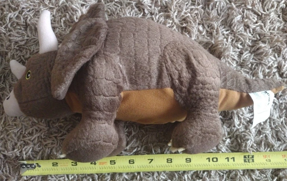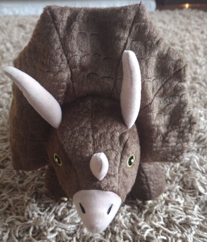 Type: Plush Stuffed Animal Color: Brown Animal: Triceratops MPN: Not Applicable Non-Domestic Product: No gtin13: Does not apply Character Family: Dinosaur Modified Item: No Size: Small (6-14 in) Year: Unknown Country/Region of Manufacture: China Brand: Kohl's Cares for Kids UPC: Does not apply