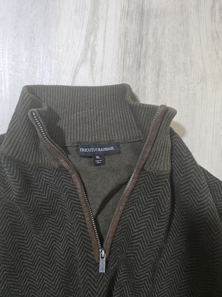 Tricots St. Raphael Mens 1/4 Zip Sweater Size XL dark green cotton viscose