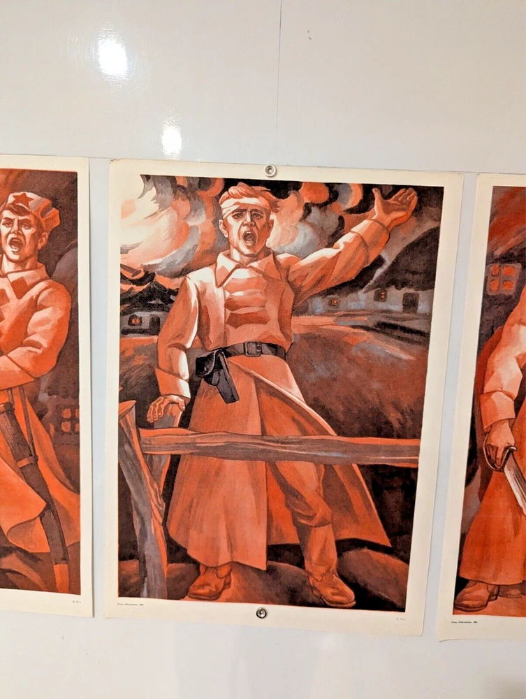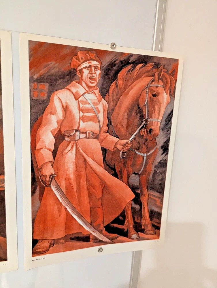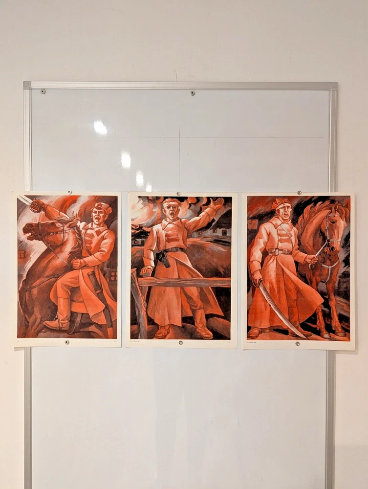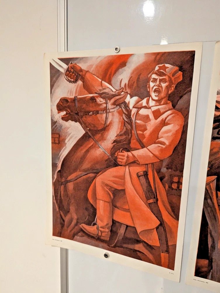 Triple Poster Triptych 1984 - Original RED Soviet - Military Man & Horse WW II