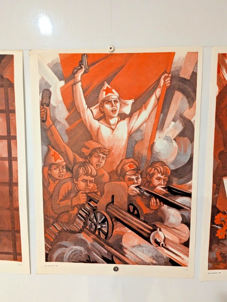 Triple Poster Triptych 1984 - Original Soviet - Feat of a teenager World War II