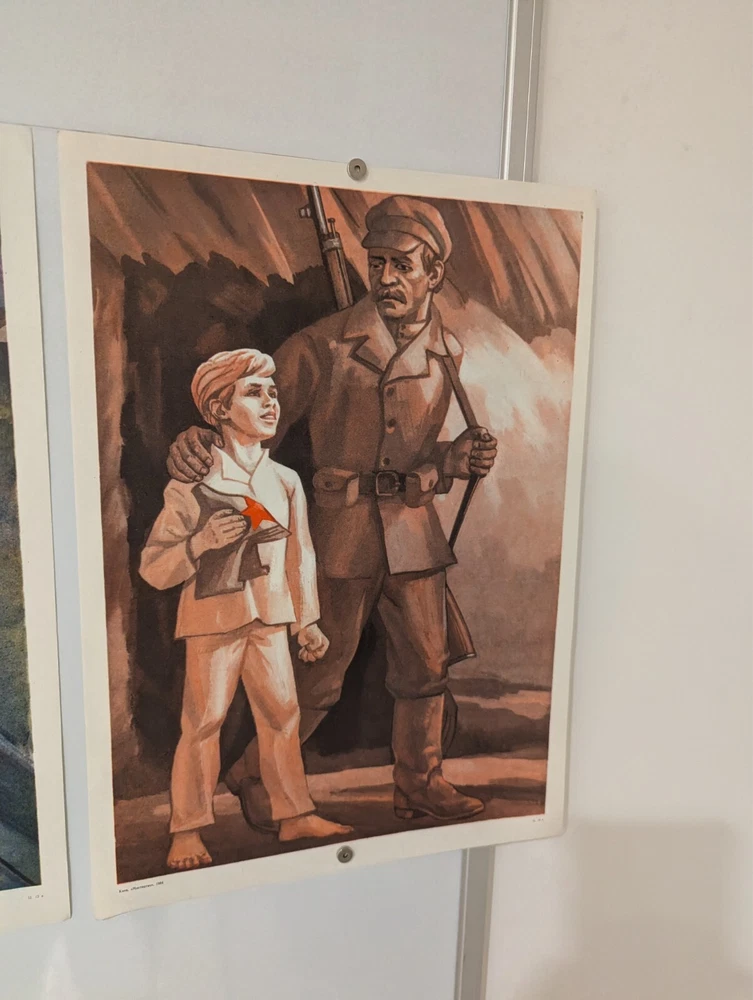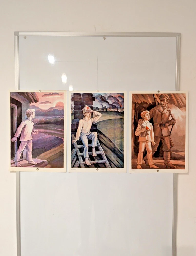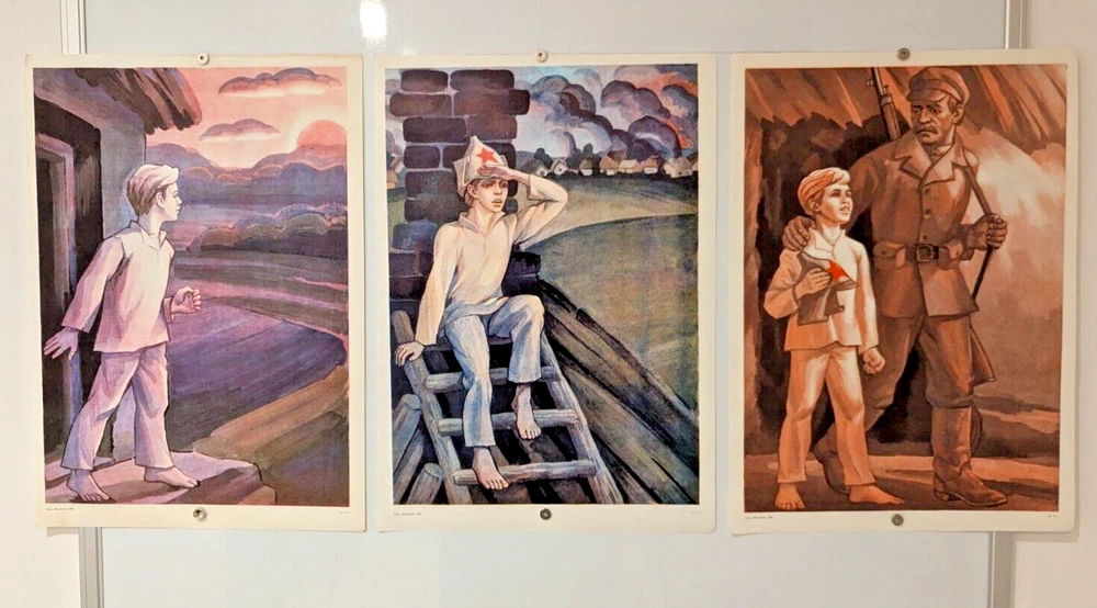 Triple Poster Triptych 1984 - Original Soviet - little scout of enemy positions
