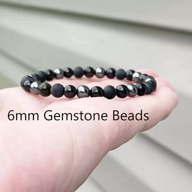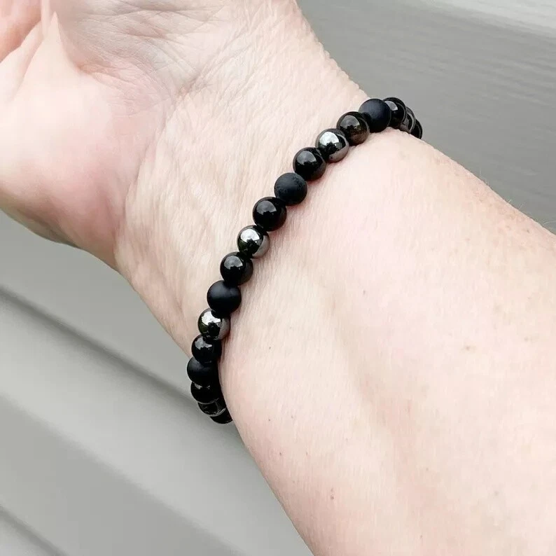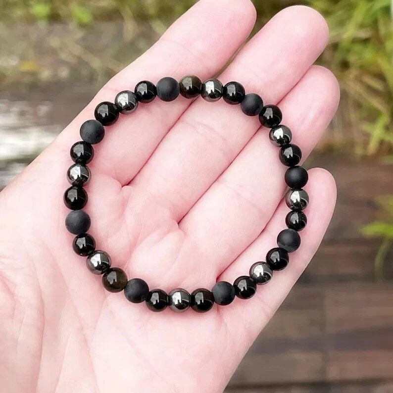 Triple Protection Black Onyx Tourmaline Obsidian Hematite Healing Bracelet 6mm