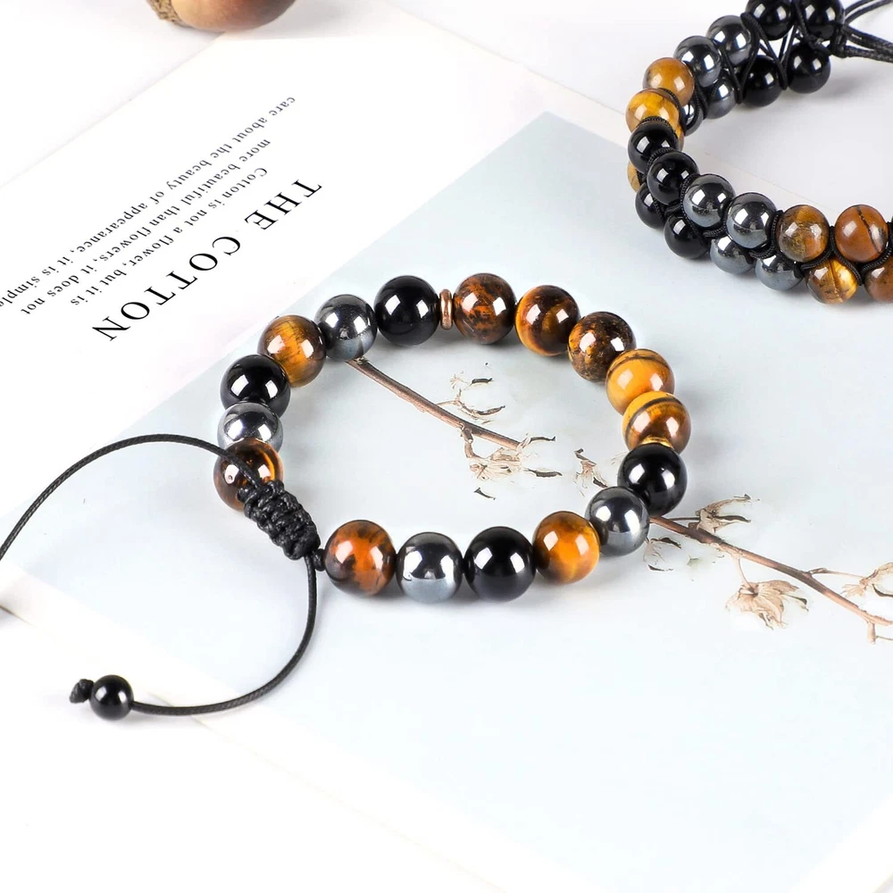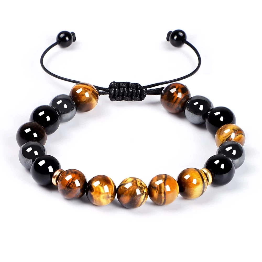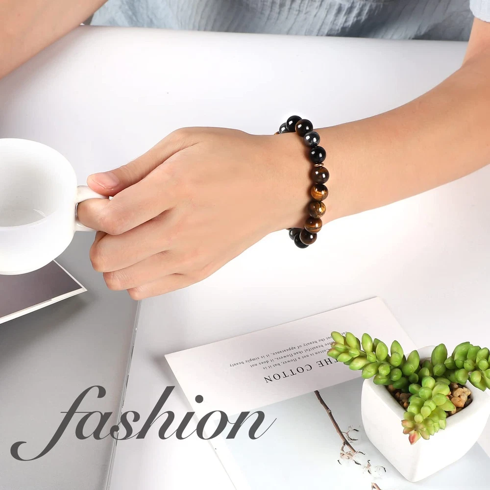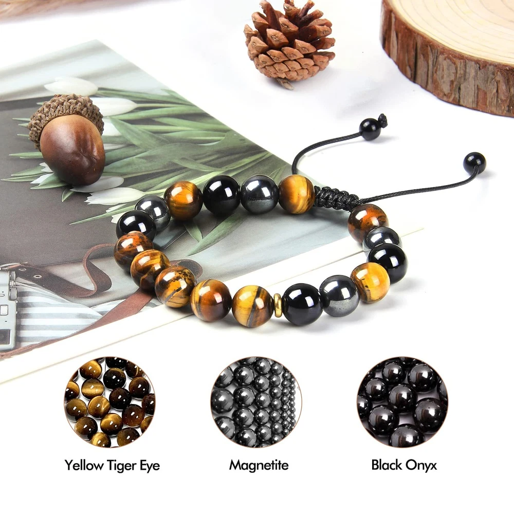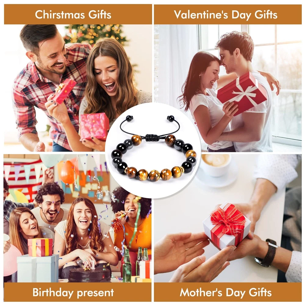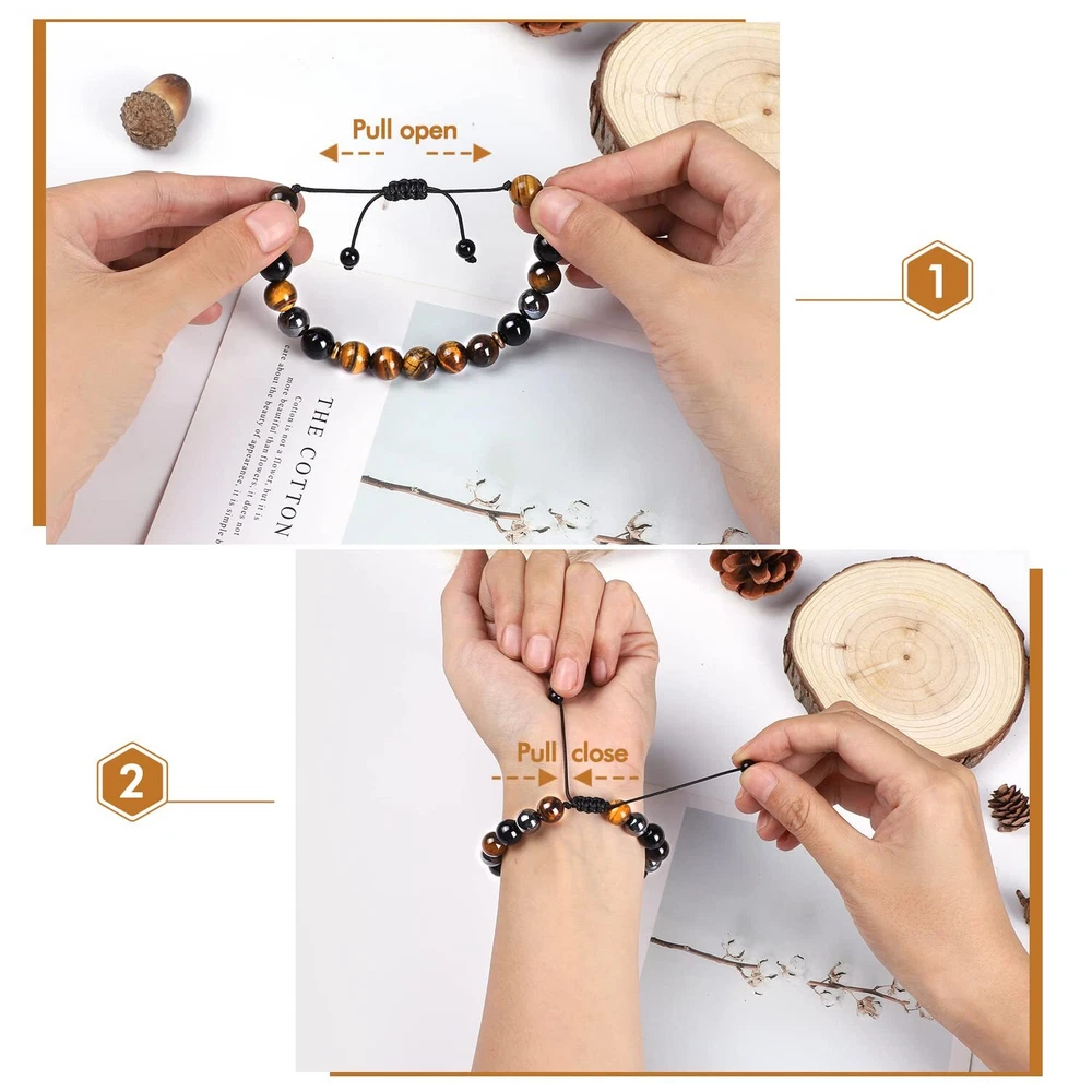 Tiger Eye Bracelets: 8mm Natural tiger eye stone have a power of emotional clearing and keeping things energetically balance, meditate and yoga can make the anxiety calm down and heal yourself. The tiger eye bead also shows the power of the king. Warrior fights with difficulties like the tiger Pertfect Gifts for Friend: which could be gifted for boyfriend, husband, brother, dad, son, friends...When he wear the item, he will feel surrounded by love and never forget that he is always be loved Size & High Quality: Natural stones. The beaded bracelets are threaded with strong nylon string, which is never easy to be broken. Beads size is about 8mm, the length is 7.5"-12", adjustable and waterproof, fits for most women and men Beaded Bracelets for Men: Simple and fashion design is suitable for any occasions, including party, date, office...You can wear it alone or layering with other wrap bracelets, makes your look charming. Or, you could send it as a gift for surprising the one you love on his birthday, Christmas, anniversary, valentine's day, thanksgiving day... After-sale Service: 100% Satisfaction and money-back guarantee. If you have any questions, please contact us at any time