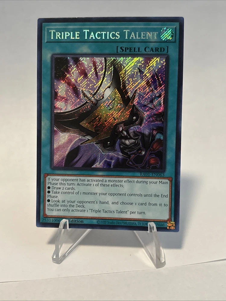 This Triple Tactics Talent card is a must-have for any Yu-Gi-Oh! TCG collector looking for a rare and unique addition to their collection. With its Platinum Secret Rare rarity and 1st Edition feature, this card is sure to be a valuable find. The card is in English language and belongs to the 25th Anniversary Rarity Collection set. The card is a Spell-Normal type and is manufactured by Konami. It has the card number RA01-EN063 and belongs to the Attribute/MTG:Color category. This card is perfect for those looking to add a special touch to their collection and stand out from the rest. Don't miss out on this opportunity to own a piece of Yu-Gi-Oh! history.