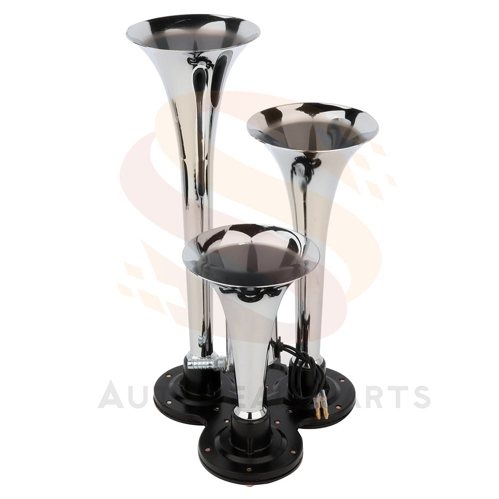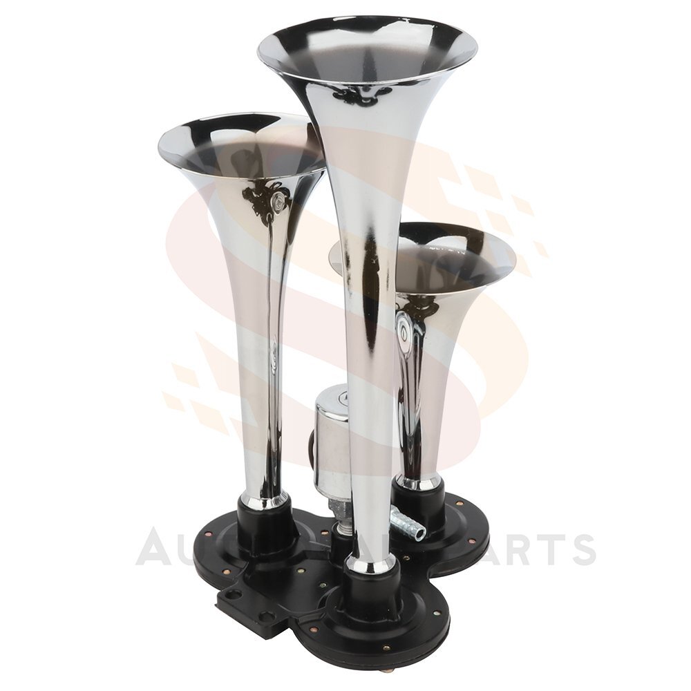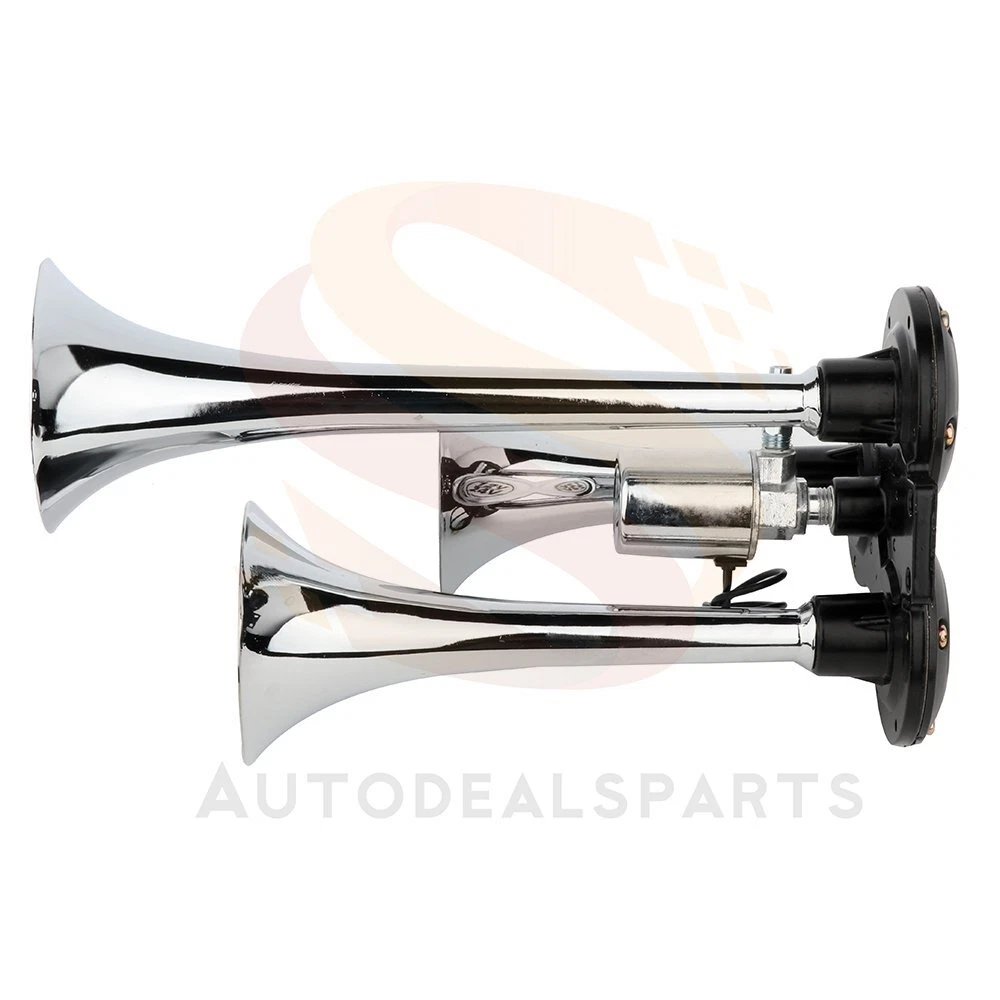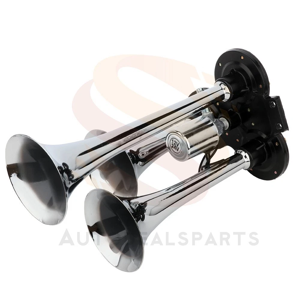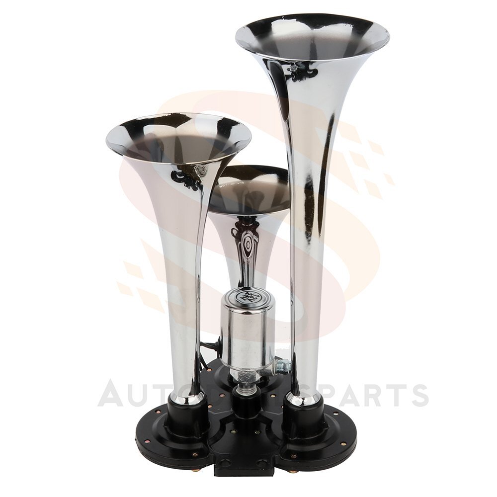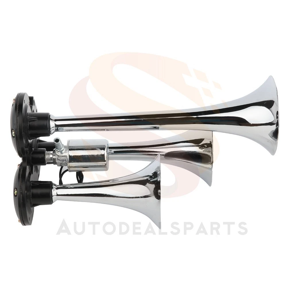 Specifications: Air Horn: Triple Trumpet Sound Type :Train Power :12 Volts Trumpet Overall Dimensions: 14" L x 7" W x 6.5" H Trumpet Lengths: 13.75", 11.5", 9" Trumpets Bell Width: 3.75" Material:Chrome Plated ZINC Trumpets(Non-Rusting) On-board Air System: Autodealsparts Triple Trumpet 150PSI Compressor 3L Tank Air Horn Kit For Truck Car Train System Specifications: Air Horn: Triple Trumpet Sound Type :Train Power :12 Volts Trumpet Overall Dimensions: 14" L x 7" W x 6.5" H Trumpet Lengths: 13.75", 11.5", 9" Trumpets Bell Width: 3.75" Material:Chrome Plated ZINC Trumpets(Non-Rusting) On-board Air System: Color :Black Power :12 Volts DB output: 150.2 DB Maximum Pressure :150 PSI Pressure Switch Settings: 110 PSI on, 150 PSI off Duty Cycle: 15% Tank Capacity :3 liters Dimensions: 15" L x 6" W x 8" H Maintenance Free :Yes Thermal Protection: Yes Instructions: Remove compressor, receiver drier or accumulator, orifice tube or expansion valve. Flush the condenser and evaporator using NON-OIL BASED A/C flush. On expansion valve systems THE VALVE MUST BE REMOVED before the evaporator can be flushed. FLUSHED CONDENSERS FROM OUTLET TO INLET AND EVAPORATORS FROM INLET TO OUTLET. Drain all the oil from the new compressor and dispose of according to local, state and federal laws. NOTE: if you compressor has a drain plug you will need to open it up and drain what oil is in there too. Install half oil charge into the compressor and the remainder throughout the system. Turn compressor shaft 8-10 full revolutions to insure front seal and other internal parts are lubricated. Install new receiver drier or accumulator and new orifice tube or expansion valve. Evacuate the A/C system for a minimum of one hour. After evacuation install half the refrigerant charge and let the system set for 1 minute. This will allow the refrigerant to pick up oil and spread more evenly throughout the system. Start engine whit A/C controls on MAX AIR with door and windows open. Add the remaining charge of refrigerant as called for by the manufacture. Package Include: 1 X Triple Trumpet Air Horn 1 X 12v Electronic Solenoid 1 X All-in-one Compressor & Tank 1 X Pressure Switch, Pressure Gauge & Air Fiittings Pre-installed 1 X 10 inch Air Tubing 1 XHorn Mounting Hardware? Note: All dimensions are measured by hand, there may be small deviations. Color may vary slightly due to the color setting of each individual monitor Professional installation is highly recommended if you have any difficult in installation The positive and negative poles of the power supply are respectively connected with the two wires on the solenoid valve(no positive or negative points)The air tap on the solenoid valve is connected to the gas source of the vehicle(make sure no air leak) Thermal Overload Protection ( Will automatically shut off when air compressor goes over 176F and restart when it gets back down to 158 F. ) Newer Style condenser designs are very hard, and sometime it would be impossible to do flush, In those cases it is suggested that if the compressor has a major failure the condenser should be replaced. Face to the mouth of the hose connector and then bind it clockwise with the sealing tape for 3-5 circles. Then tightly screw up it with the connector of compressor and horn. Item Specifics Brand autodealsparts Manufacturer Part Number AUT10808601S Type Horn Power Source 12V DC Manufacturer Warranty 1 Year Mounting Hardware Included Yes Color Black Material Metal Placement on Vehicle Left,Right,Front Sound Output 150 DB Surface Finish Chrome Plated ZINC Trumpets(Non-Rusting) Trumpet Lengths 13.75", 11.5", 9" Trumpet Bell Width 3.75" Tank Capacity 3 liters Pressure Switch Settings 110 PSI on, 150 PSI off Max Working Pressure 150 PSI Duty Cycle 15% Feature ESCP Feature ESCP Payment We accept multiple payment methods Shipping 1. We only ship to confirmed paypal addresses, your paypal address must match your shipping address. 2. All domestic orders will be shipped via USPS, UPS or Fedex from our US warehouse and usually arrives to your door in about 2-7 business days. 3. If you have not received your shipment within 15 days from payment , please contact us. We will track the shipment and get back to you as soon as possible with a reply. 4. Local pick up is not available. Returns All of our brand new items come with a 30-days money-back guarantee. Contact Us If you have any question, please contact us. Warning Please check carefully for the fitment before order, thank you. Autodealsparts DESCRIPTION PAYMENT SHIPPING RETURN POLICY CONTACT US Shop Category Store Home AC Compressor Mirrors Oxygen Sensor Roof Rack Engine Repair Kit Engine Air Intake & Exhaust Tonneau Cover Lawn Mower Accessories Car Tools Truck Bed Storage Box Oil Pump & Water Pump Door Handle Running Board Motor Transfer Case Motor Blend Door Actuator Secondary Air Pump Windshield Wiper Motor LED headlight Assembly Dipstick Horns complete struts fog lights Pillar Posts Fuse Holder Box winch Shocks Struts Struts & Suspension Kit & Hubs Window Visors Air suspension Fuel Injector Fuel Pump Throttle Body Window Regulator Turbo Turbocharger Window switch CV AXLE Coolant Overflow Tank Mud Flaps Bumper Side Marker Lights ignition Brake Calipers Wing and Spoiler ATV CV Axle Mass Air Flow Sensor-MAF Coilover snorkel kit Jeep lift supports Adj. Control Arm VVT Variable Valve Timing Door Lock Actuator Chainsaw Chain Car Moulding Cover Trim Steering Wheel Hole Adapter Golf Cart Accessories Motorcycle Accessories Ramps Cylinder Piston Gasket Kit Valve Cover Valve Rocker Arm Crankshaft Drive Clutch Radiator Shutter Garden Water Pump Tire Pressure Sensor Camshaft Hydraulic Lifters Dash Board Cover Fuel Tank Accessories Tensioner Sun Visor Power Steering System RV Third Brake Light Strut Mount Coil Springs Brake System Parts ◈ Brake Calipers ◈ Brake Drums & Brake Shoes ◈ Brake Pads & Brake Shoes Electric Dump Tarp Motor Clock Spring Air Dryer Power Brake Booster Leaf Spring Shackle Kit key Center 