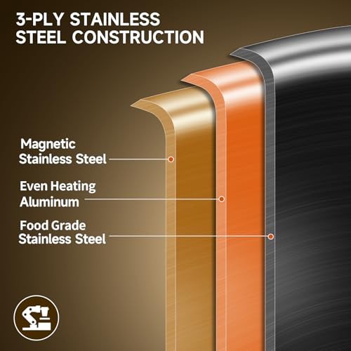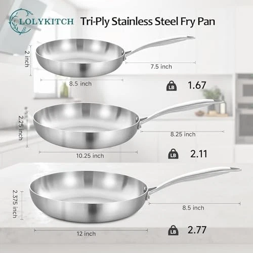 Tri-ply Stainless Steel Frying Pan Set - 8.5, 10 & 12 Inch for Stir-Frying