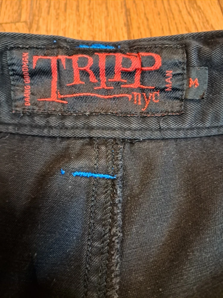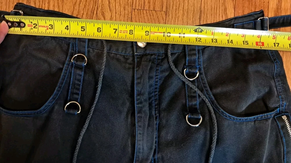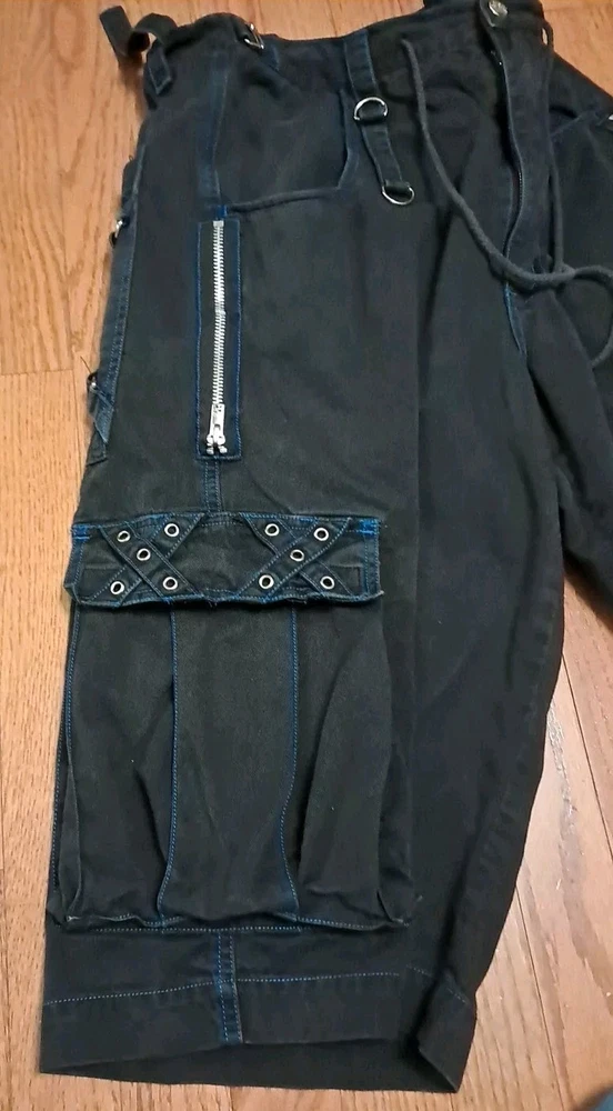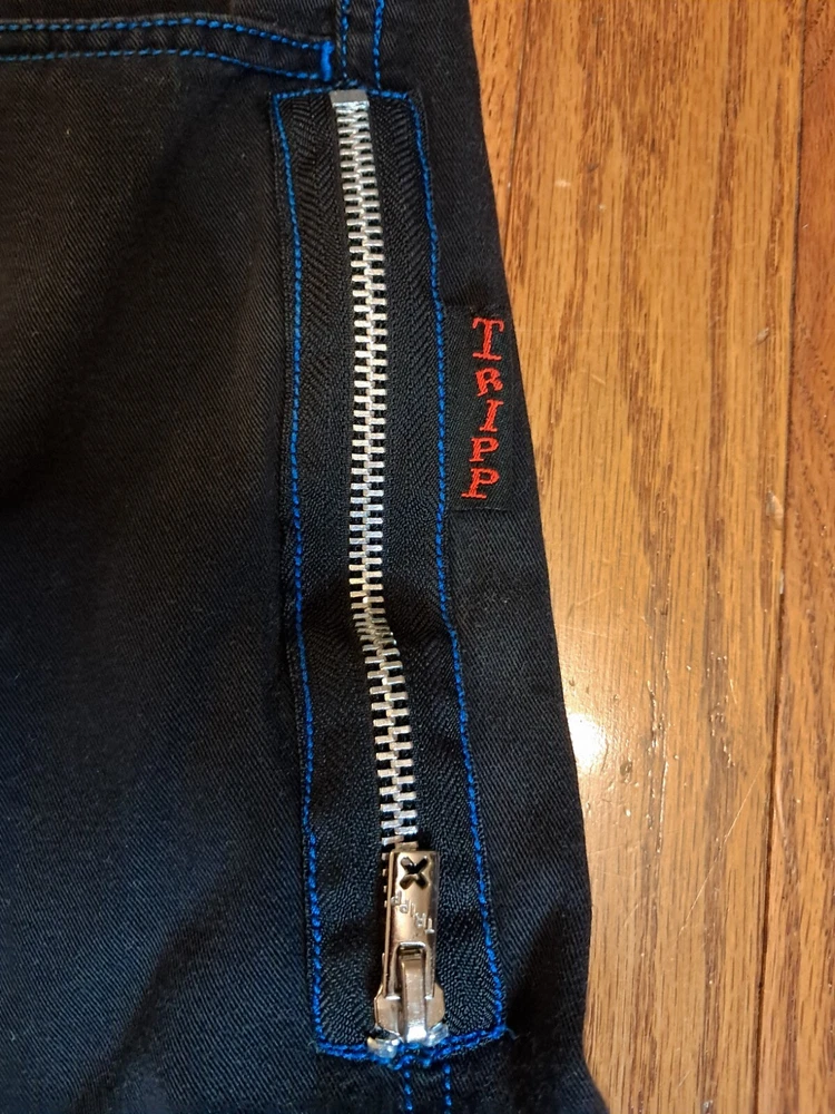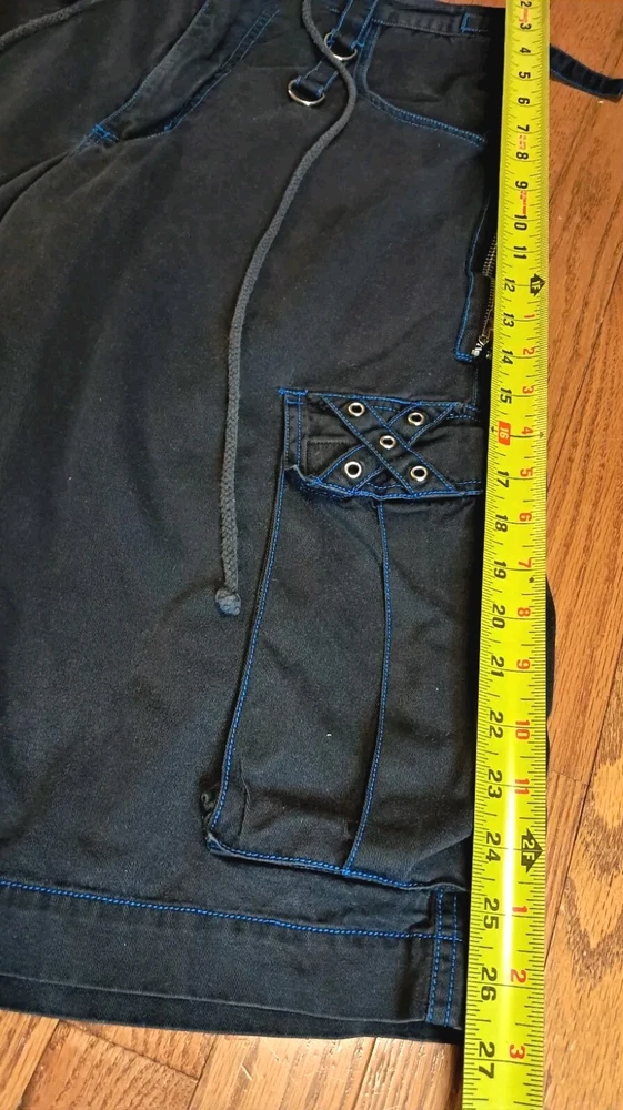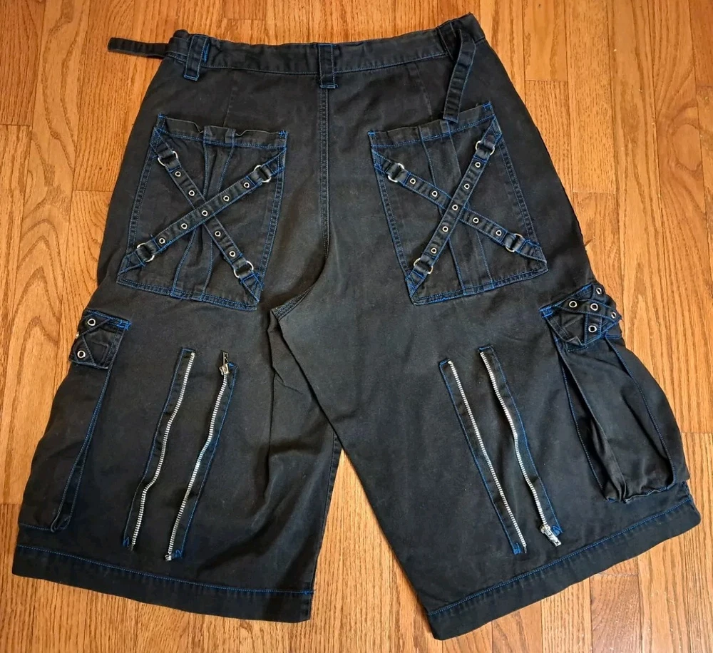 Tripp NYC Shorts Medium Vintage Y2K Goth Punk Black W Blue Stitching Zippers Smoke free pet free home Black and drawstring material shows some fading