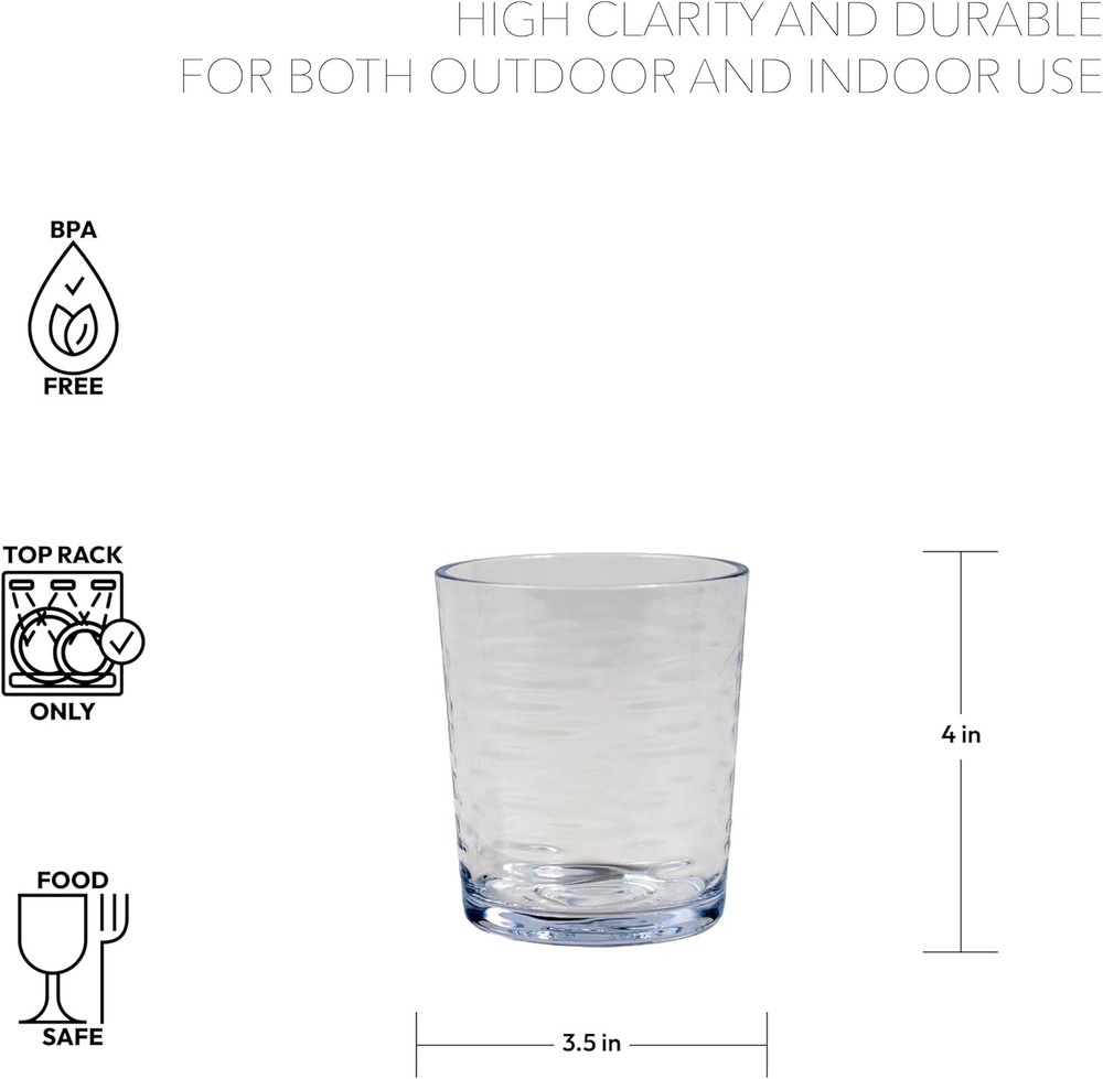 Tritan Foundry Double old Fashioned Drinkware set of 4, 14.3 oz., DoF, Clear Product Details Brand: Abode Homewares Color: Clear Special Feature: Lightweight, Dishwasher Safe, Break Resistant Style: Drinkware Recommended Uses For Product: Home Occasion: Everyday Included Components: drinking glasses Shape: Round Pattern: Solid Product Care Instructions: Dishwasher Safe Material Feature: Recyclable Reusability: Disposable Unit Count: 4.0 Count Product Dimensions: 3.5"W x 4"H Number of Items: 4 Manufacturer: TarHong Size: DoF Item Weight: 1.43 pounds Item model number: DK24076284 MaterialCapacity: Plastic14.3 ounces Crafted from Tritan, this Tritan Foundry Double Old Fashioned Glass offers a blend of style and durability, ensuring a reliable and sophisticated addition to your drinkware collection; for indoor or outdoor use Foundry Tritan Drinkware is constructed from Tritan, a high-quality, BPA-free copolyester known for its exceptional clarity, toughness, and resistance to impacts, ensuring a reliable and long-lasting product This Foundry set includes 4 double old fashioned glasses that measures 3.5" x 4" and holds up to 14.3 oz. With the look and clarity of glass, these are the perfect alternative to disposable drinkware; great for picnics or poolside entertaining; Tritan Foundry drinkware offers versatility for everyday use as well as special events With its dishwasher-safe feature, maintaining the TarHong Tritan Foundry Drinkware is convenient, allowing for quick and effortless cleanup after use; food safe, BPA free, Phthalate free, Prop 65 compliant Abode Homewares by TarHong products are trend-right tabletop collections designed in an array of patterns, colors, and shapes that will complement any decor style. TarHong has been a respected supplier for independent and mass retailers globally for over 15 years. Design is what we are built on; we bring design and color to the home – from casual indoor and outdoor entertaining to kids tableware, kitchen prep, kitchen storage, pet feeding and accessories. Enjoy exploring our vast product offering utilizing different material compositions: Planta, Merge, wheat straw PP, acrylic, plastic and pure Melamine. All of our products are completely BPA free and easy to care for. They are shatterproof, stackable and dishwasher safe. Not suitable for microwave.