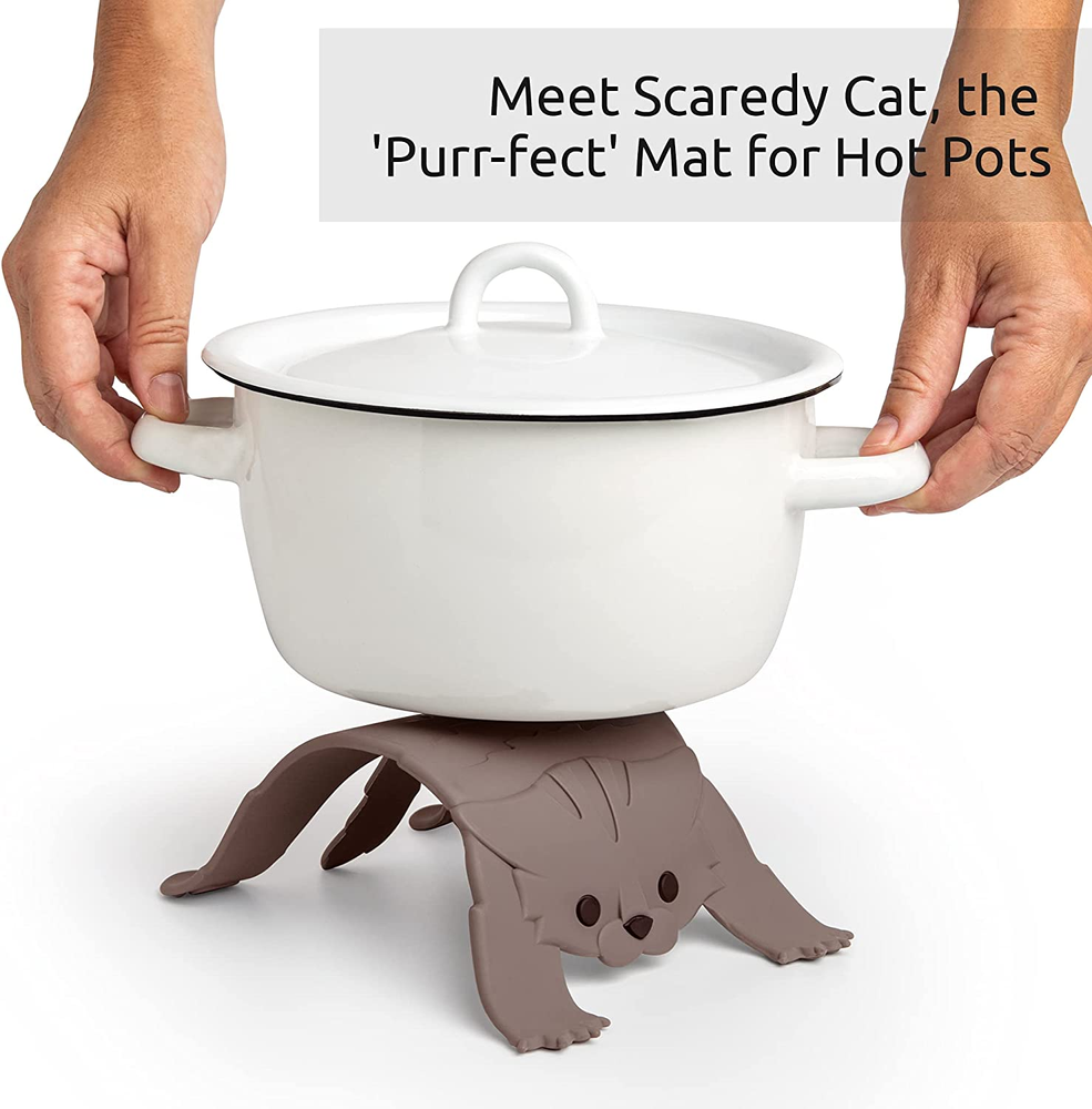 Trivet for Kitchen Counter - Hot Pot Holder Trivet for Table - BPA Free Hot Pads for Kitchen Counter - Heat Resistant (Gray) Meet Scaredy Cat, the 'Purr-fect' Mat- Design awarded OTOTO Studio brings you Scaredy Cat, the 'purr-fect' silicone trivet mat to protect surfaces from hot pots! Made of food-grade silicone, this heat resistant kitty cat ain't so scared of anything hot. Bring in your freshly cooked meals and simply place this kitty under the dish. If you're on the hunt for trivets for quartz countertops, wooden tables, and any surface that's sensitive to heat, Scaredy Cat is the furry friend you need. An 'Un-fur-gettable' Gift- Looking for new home gift ideas, housewarming gifts, or funny kitchen gadgets? How about silicone trivets for the kitchen counter? This large silicone trivet is the 'purr-fect' present for home cooks, foodies, master chefs, and anyone who loves an adorable surprise and those into fun kitchen gadgets! It's also a 'paw-some' heat resistant mat for air fryer. With Scaredy Cat as your trusty meal-prepping pal, cooking is more fun and delightful. Prevent 'Cat-astrophic' Hot Mess- A bit clumsy in the kitchen? Prevent 'fur-ther' little accidents with silicone mats for kitchen counter! This non-slip pot holder keeps any hot dish in place. Whether you're a budding homecook or a meal preppin' pro, this silicone pad is the best cooking buddy to avoid 'cat-astrophic' hot messes. Scaredy Cat supports heavy pressure cooker, hot pans, plates, and bowls. You can also use it as an eye-candy coaster! Best Kitten Kitchen Staple- Scaredy Cat is BPA-free, durable, and long-lasting... It's actually got more than nine lives. Once you're done using it, simply hand wash for easy-peasy cleaning. It's a perfect addition to your home. Whether you're a cat person or not, this is the only kitten you'd love to bring in the kitchen to help you out and get you 'feline' confident while meal prepping. Get yours right 'meow'! A Sprinkle of fun- Ever heard of the one where they lived happily ever after? Well, that's always the story with OTOTO's household products. Why? Because everyday chores are no longer a bore when you've got adorable gadgets to explore! Our team strives to create functional products with a quirky and unexpected twist. We love sprinkling in a bit of fun and magic in all that we do and we hope you feel the same way too! Product Description The video showcases the product in use. The video guides you through product setup. The video compares multiple products. The video shows the product being unpacked. OTOTO Kitchen Gadgets Merchant Video 1 Spooky 2 Best Sellers 3 Gifts 4 Gnomes & Mushrooms 5 Tea Infusers Item model number 16972 Unit Count 3.8449 Ounce Assembly required No Dishwasher compatible No Color Gray Material Silicone Country of Origin China Global Trade Identification Number 07290015169332 Item Weight 4.2 ounces Batteries required No Shape Scaredy Cat Product Dimensions 5.31"L x 3.15"W x 6.89"Th Product Care Instructions Hand wash with mild soap and water or dishwasher safe Number of pieces 1 3.15 "th x 5.31 "th x 6.89 "th. Weight: 4.2 oz Shipping from the USA All of our products are shipped from the USA, ensuring quick delivery to your destination. Payment We offer the following payment methods: PayPal, credit card, bank transfer, and eBay's secure payment system. Free Shipping & Free Returns Shipping within the USA is FREE. Additionally, any return is absolutely free for you. Risk-Free Purchase You have the option to return an item within 30 days without any justification. We cover the return shipping costs! Fast Shipping We ship immediately upon receipt of payment. Generally, the package is delivered within 2-3 days in the USA. If it takes longer, we will contact you. Quality and Costs Made in Europe, USA, China No customs fees or additional charges Total satisfaction guarantee Invoice with declared VAT available upon request in .pdf format Feedback Your feedback is very important to us. After you pay for your purchase, you will automatically receive positive feedback from us.