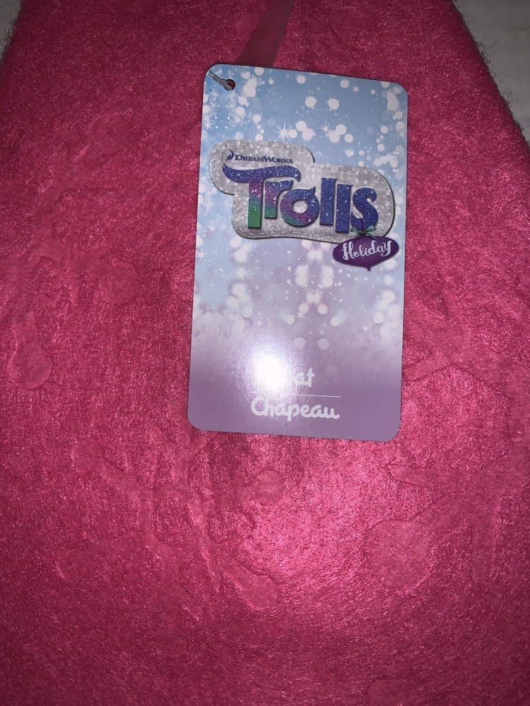 Trolls Holiday Pink Santa Hat with Pom Pom Ball Snowflake Imprint 15x12”
