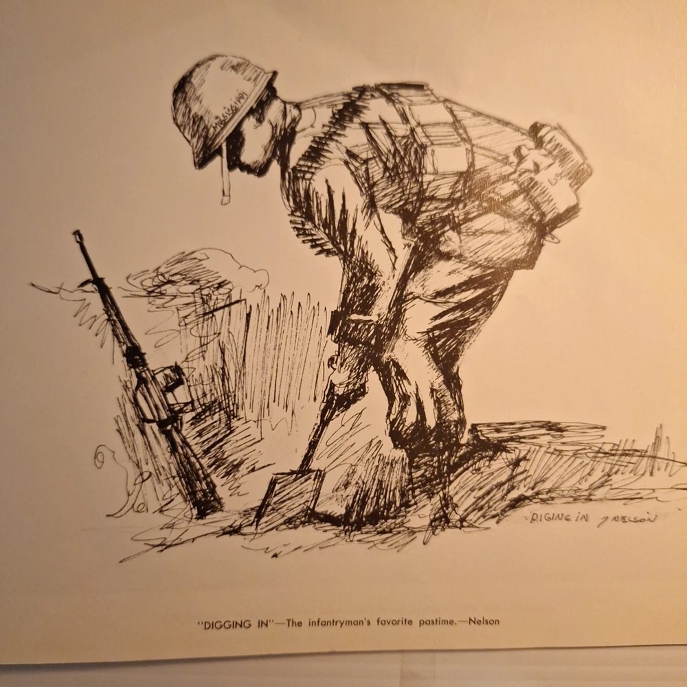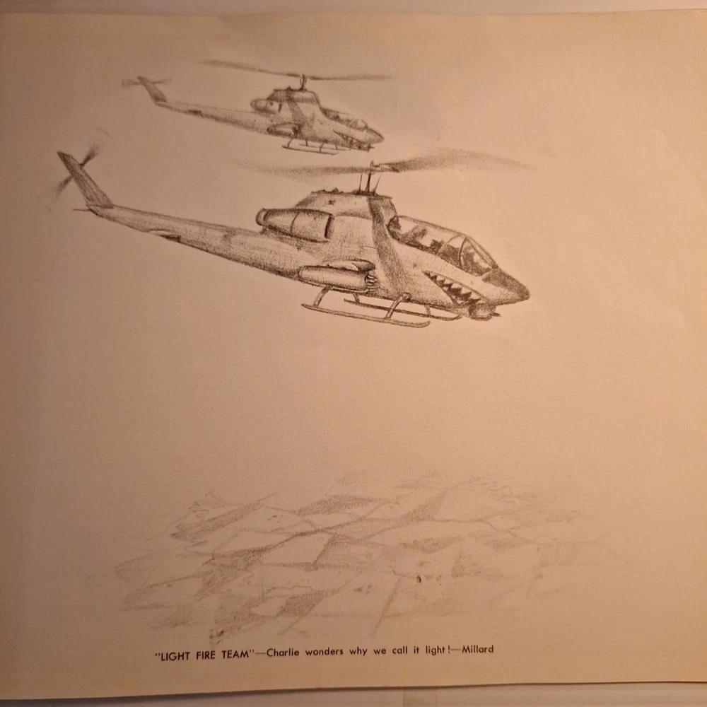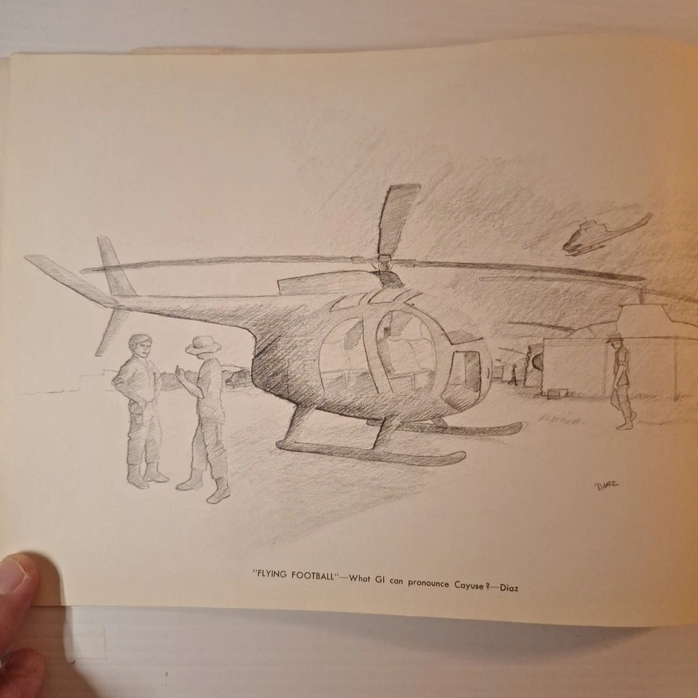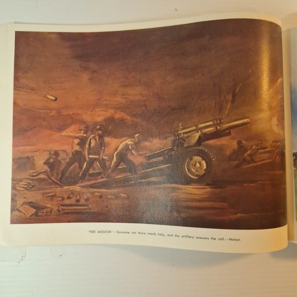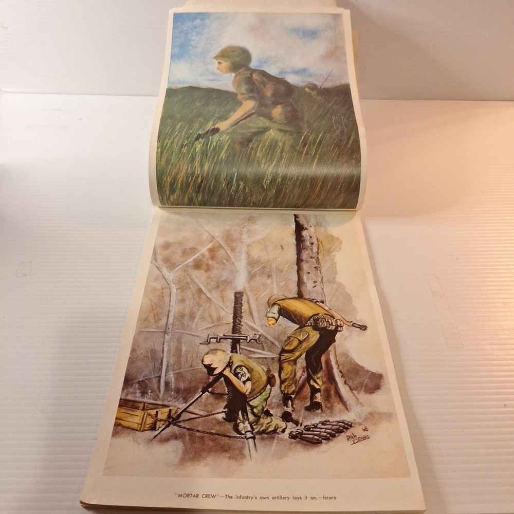 The Tropic Lightning Combat Art Vol. IV Vietnam War U.S. Army Book, Jul - Dec 1968 is a rare and collectible piece from the Vietnam War era. This first edition softcover book, written in English and based out Vietnam, provides a unique insight into the military strategies and tactics used by the U.S. Army during this tumultuous period. The book's focus on the Vietnam War makes it a valuable addition to any collection focused on military history, offering a glimpse into the struggles and triumphs of the era. *This book was illustrated by combat artists of that time. * front cover has top right and lower right corners missing. The first few pages have some damages on the corner of the pages where small pieces may be missing. The rest of the pages are in very good condition with slight wear. The back of the book is in good shape with a little bit of wear on the corners. Front cover also has a bend in it. * This is a very rare book, as it was distributed to all of the men of the Tropic lightning division during this time period.