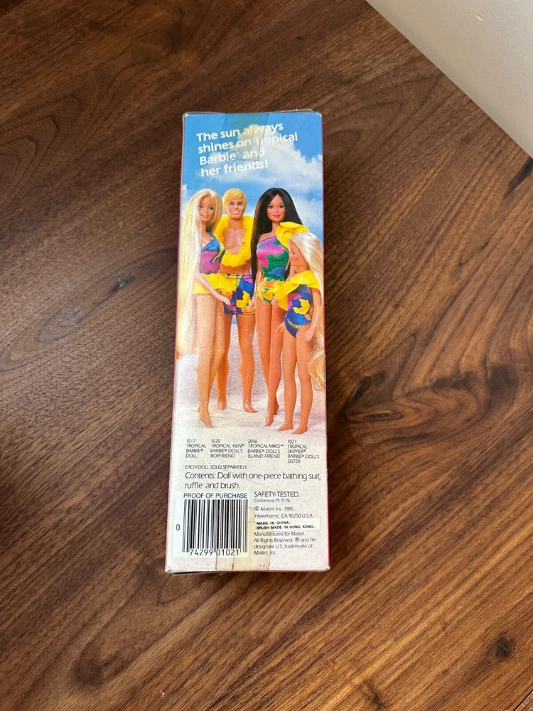 Tropical Skipper Barbie Doll 1021 Blonde Hair Blue Eyes Swimsuit 1985 New PP There is shelf wear to outside packaging, nothing major Doll is PERFECT! *EXACT SHIPPING CHARGED* YOU PICK CARRIER/DELIVERY METHOD I DO NOT MARK UP SHIPPING LIKE MOST SELLERS Will ship FAST & SECURE! *I DO OFFER COMBINE SHIPPING* Please check out my other BARBIE Listings & STORE! SAVE ME AS A SELLER! Buy with confidence! Any questions, please message me! Thanks for looking! INV PP