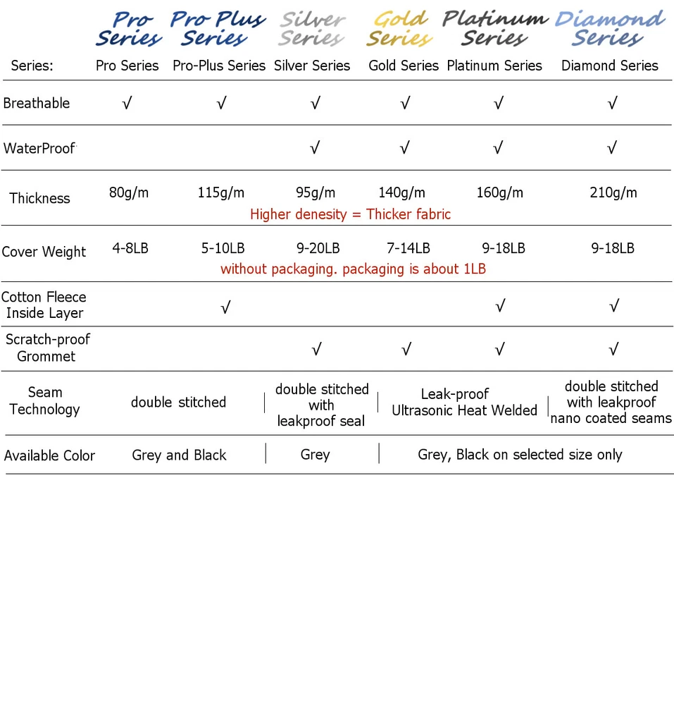 XTREMECOVERPRO PLATINUM SERIES WATERPROOF BREATHABLE CAR COVER XTREMECOVERPRO CAR COVER BASIC FEATURES 100% Breathable: Our cover is made by 100% breathable non-woven fabric that allows heat, moisture, dampness, and condensation to escape easily. Protection Against UV Rays: Completely blocks UV rays from sun that damages the vehicle's surface and interior. Protection Against all Dust Elements: Reduces and protects from natural pollutants, animal dropping, tree sap, industrial pollutants, airborne dust and dirt Smooth Fabric Against Scratch: Our fabric is very smooth, abrasion resistant that is safe and gentle to paintwork. Elastic Hems: Front and rear under body elastic hems. Under Body Clip Strap: Left to right under body strap helps to hold the cover during windy season. It made from same material of car cover that does not scratch paint. Fitment: XtremeCoverPro car cover has over 30 different sizes to ensure best fit to cars, SUVs, and pickup trucks ADDITIONAL FEATURES FOR DIFFERENT SERIES Pro Series Pro Plus Series Silver Series Black Fabric with Double Yellow Stitching: Beautiful black with yellow stitching car cover makes your car like in a show room vehicle Gray Fabric with Double Stitching: Gray color with same color double stitching seams provides an incredible strength and durability. Pro Series is not waterproof Plus the basic features Soft Cotton Fabric Against Scratch: Extra soft, smooth, abrasion resistant cotton lining that safe and gentle to paintwork Black Fabric with Double Yellow Stitching: Beautiful black with yellow stitching car cover makes your car like in a show room vehicle Gray Fabric with Double Stitching: Gray color with same color double stitching seams provides an incredible strength and durability. Pro Plus Series is not waterproof Plus the basic features 100% Waterproof: No water can pass through but allows moisture to escape easily. Double Stitching with 100% Leak-proof Heat Welded Seal Strong double sitiching with leak-proof heat welded seal provides true 100% waterproof and all weather protection for your vehicle. Under Body Adjustable Drawstring: adjustable drawstring helps to tie up the cover and helps to hold the cover during windy season. Also helps the cover to fit more snug. Silver Series is made by PVC vinyl. It is heavier material. Plus the basic features Gold Series Platinum Series Diamond Series 100% Waterproof: No water can pass through but allows moisture to escape easily. 100% Leak-proof Ultrasonic Heat Welded Seams provides true 100% waterproof and all weather protection for your vehicle. Lightweight: eco friendly non-woven fabric reduces time and effect during process of install and remove the cover. Under Body Adjustable Drawstring: adjustable drawstring helps to tie up the cover and helps to hold the cover during windy season. Also helps the cover to fit more snug. Plus the basic features Soft Cotton Fabric Against Scratch: very soft, smooth, abrasion resistant that safe and gentle to paintwork 100% Waterproof: No water can pass through but allows moisture to escape easily. 100% Leak-proof Ultrasonic Heat Welded Seams provides true 100% waterproof and all weather protection for your vehicle. Lightweight: eco friendly non-woven fabric reduces time and effect during process of install and remove the cover. Under Body Adjustable Drawstring: adjustable drawstring helps to tie up the cover and helps to hold the cover during windy season. Also helps the cover to fit more snug. Plus the basic features Soft Cotton Fabric Against Scratch: very soft, smooth, abrasion resistant that safe and gentle to paintwork 100% Waterproof: No water can pass through but allows moisture to escape easily. Double Stitching with 100% Nano-coated Waterproof Seams provides true 100% waterrpoof and all weather protection for your vehicle. Lightweight with Nano Repellent Coating: eco friendly fabric reduces time and effect during process of install and remove the cover. Extra nano coating repels water, snow, and other liquid. Under Body Adjustable Drawstring: adjustable drawstring helps to tie up the cover and helps to hold the cover during windy season. Also helps the cover to fit more snug. Plus the basic features PAYMENT INFORMATION We Accept the Following Payment: - PayPal - Credit Card About PayPal and Credit Cards: We are PayPal verified for 100% secure payments. PayPal allows you to send payment with VISA, MasterCard, Discover, American Express, bank account and PayPal balance. PayPal is our recommended payment method because it shortens the time required to wait for and process your payment. Additionally, we will receive all of your shipping information automatically when we receive your payment. If you do not have a PayPal account, please visit PayPay website for more details. Signing up for PayPal is 100% free and takes only few minutes to sign up. SHIPPING INFORMATION For Contiguous United States Shipping Information: - Economy Service (1-10 business days) For all contiguous U.S. packages take 1-10 business days depending on location. After your order shipped out, we will provide you with a tracking number that can be monitored at eBay order status. IMPORTANT: FedEx does NOT deliver to P.O. BOX. For AK, HI, VI, GU, PR, and Military Base Shipping Information: - USPS Priority Mail (2-5 business days, Military base might takes 20 business days) For Alaska, Hawaii, U.S. Virgin Islands, Guam, Puerto Rico, APO and AFO package is shipped by USPS with tracking number. After your order shipped out, we will provide you with a tracking number that can be monitored at USPS website For International Shipping Information: - USPS International Priority Mail All international package is shipped by USPS International Priority Mail. Normally it takes about 14-28 business days depends on location and custom inspection time. After your order shipped out, we will provide you with a tracking number that can be monitored at USPS website Import duty, tax, and charges are not inclu