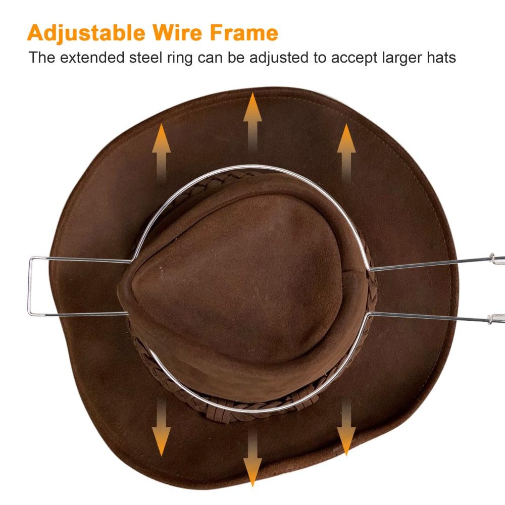 Cowboy Hat Rack For Truck Hat Clip Car SUV Hat Holder Storage Organizer If there is no place to save your cowboy hat, Come and have a try! Features 【 Keep Hat Shape 】This cowboy hat storage rack is designed with a sturdy metal spring that supports the cowboy hat keep in one spot and you will not be worried about your classic cowboy hat shape. 【 Neat and Convenient 】 The cowboy holder is a perfect adorn in car. The cowboy hat clip could keep your western cowboy hat from ending up in the trunk floor board or worse. Works great and even doubles as a place to hang your sunglasses. 【 Prevent Direct Sun Light 】Hang on the ceiling of the pickup or car trunk. Designed to help keep your cowboy hat be away from direct sun light and will not discoloring. 【 Easy to Install 】Find a place in the car where you can ensure that the end with the spring can be flatly fixed (use screws if necessary) , then you can use it. 【 Adjustable 】This cowboy hat storage rack can be expanded to accept larger hats. Specification Type: Cowboy Hat Rack Color: Silver Material: Spring steel chrome plated Size: please see the picture. Package Includes 1 x Cowboy Hat Holder Note 1. Please allow 0-1cm errors due to manual measurement. 2. Due to different monitors, the color might be a little different. 3. If you have any questions or problems, please contact us.