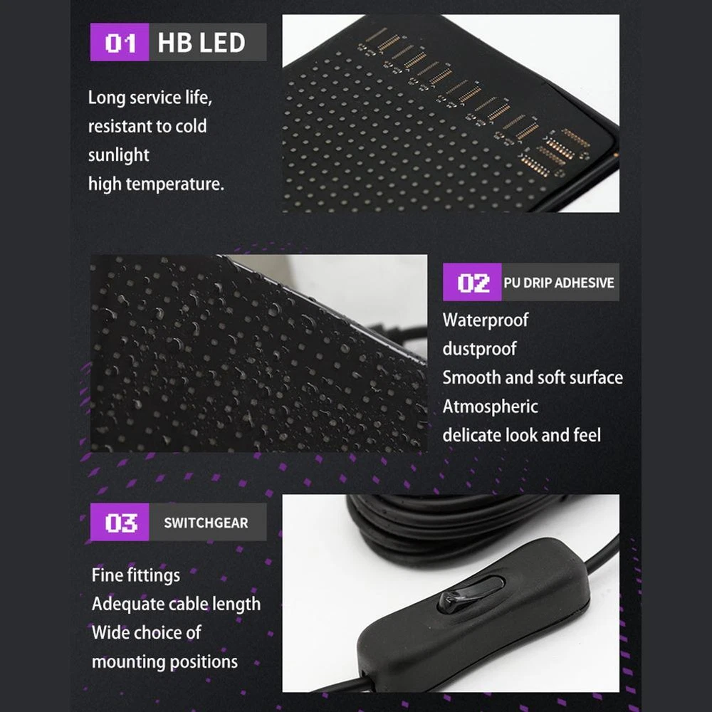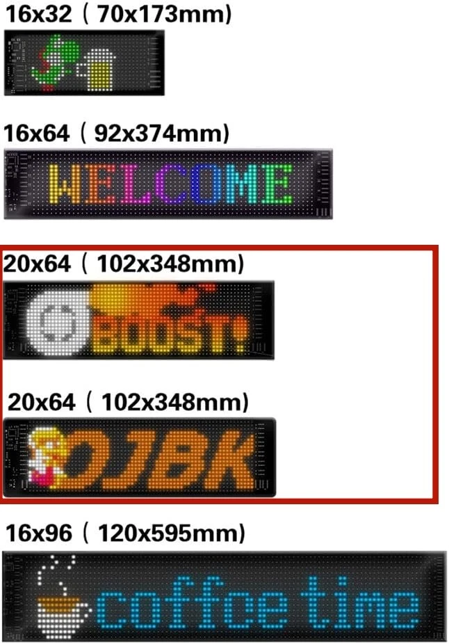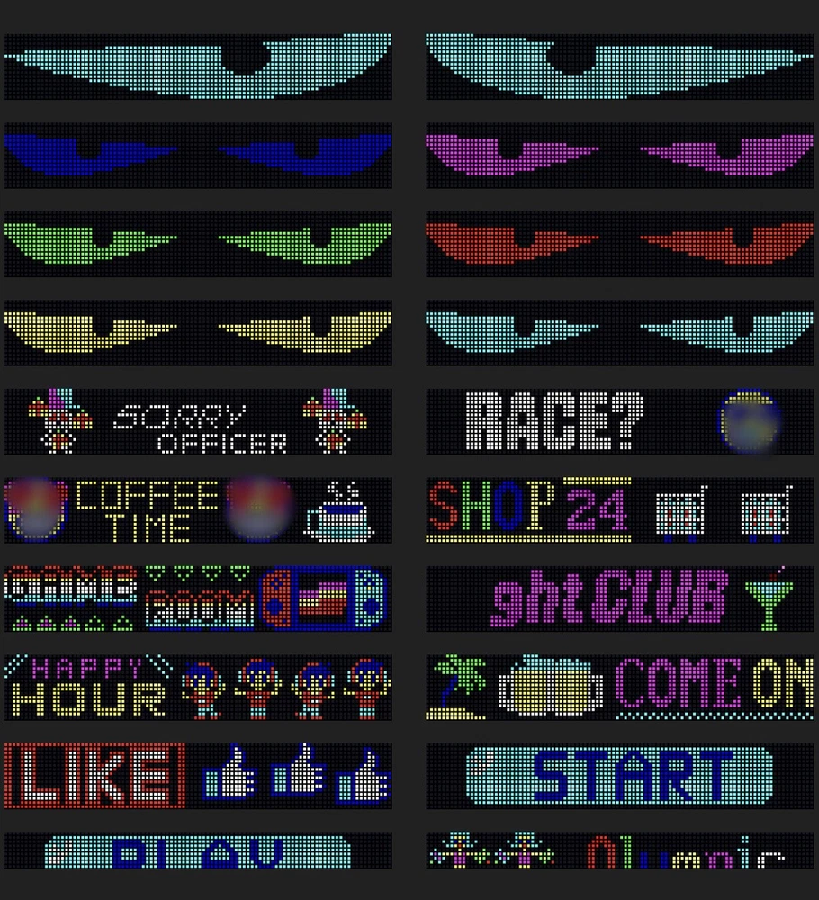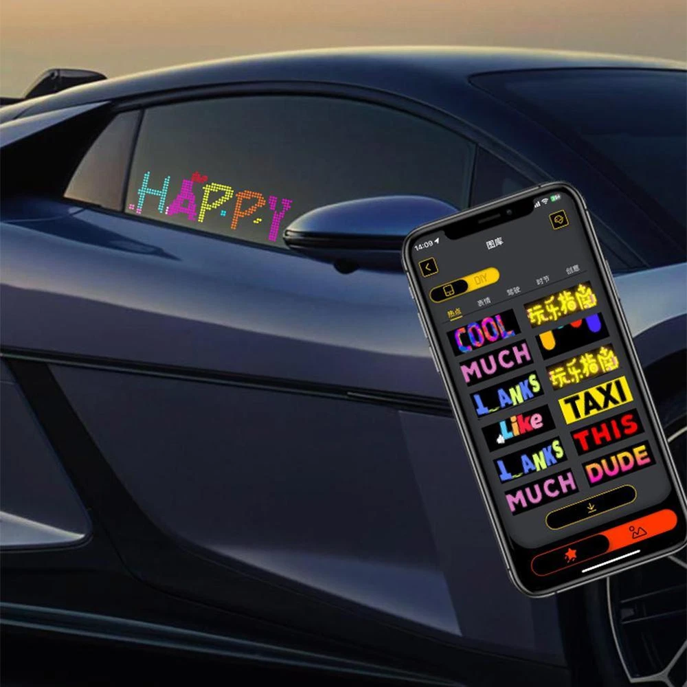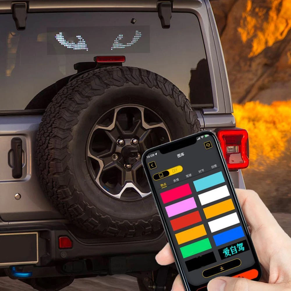 Truck-Specific Devil's Eye LED-Screen Car Eye Light Truck Dynamic LED Light Specification: Size : 348 x 102 mm / 13.7 x 4.01 inches; Resolution: 64px x 20px Precautions: If you need larger coverage, you can order two panels. We have left and right eye images for the two devices. They work independently and need to connect with the app one by one. Features: 5V USB Car LED Display Screen with APP and Remote Turn heads with the Flexible Car LED Panel, a cutting-edge lighting accessory that will transform your vehicle into a rolling light show. Using a high-end flexible LED array coupled with programmable circuitry encased in a flexible sticky polymer, this panel allows you to stick it anywhere and peel it off easily anytime without any mess. Simply plug in the supplied 5V USB cord or a power bank and enjoy! Multi-function Remote: Use the remote to instantly switch between 17 pre-loaded automotive-themed animations or your own uploaded images! Quickly display anything you need with ease. Easy Application: The LED display features a durable, waterproof, and dust-resistant sticky polymer, maintaining flexibility for easy application on any window without glue. Peel it off mess-free anytime, with double-sided adhesive included for permanent use. Additionally, the package includes a multi-function remote and a 5M 5V USB cable for versatile placement in your car, business, or home. Unlimited Customization via APP with Phone: Unlock all features for ultimate customization by seamlessly connecting via Bluetooth using the app on your Apple or Android device. Access free-draw, upload your own designed images or GIFs, and browse a library of user-generated content. There are two ways to sync them: Choose images for each panel and power them on together. The remote controller can control more than one device. Set the images for the remote controller buttons (there are 17 buttons) for each device and use the remote controller to manage both. Clear instructions for changing images on the remote controller Included: LED Panel, 5M 5V USB Cable, QR code to download the app, adhesive for permanent applicati