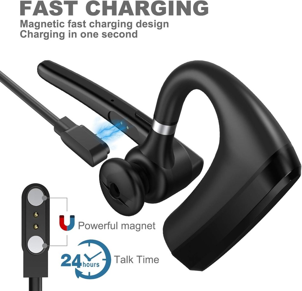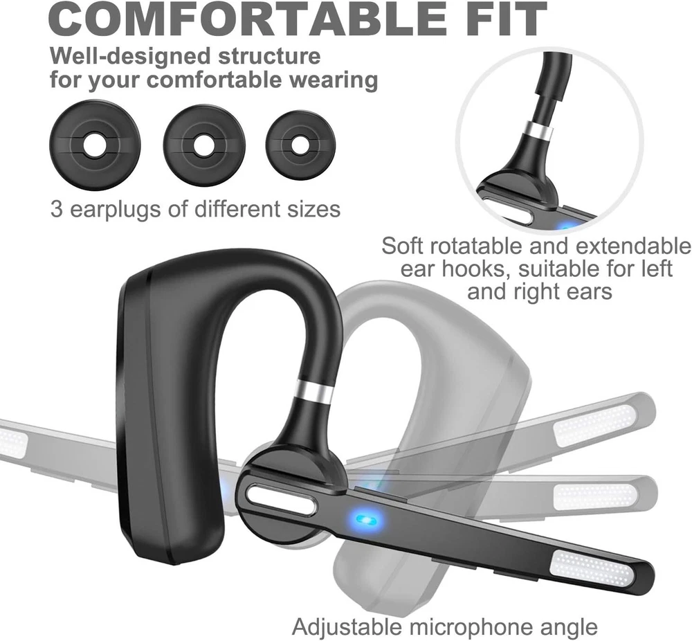 【Dual-Mic Noise Cancelling & Clear Sound】The wireless headset Combines 2 built-in HD microphones and advanced CVC8.0 noise reduction technology which can eliminate disruptive background noise without missing any single conversation details even in noisy place. Allows you to enjoy high quality music and clear phone calls wherever. 【Freely Angle & Comfortable Wearing】180° rotatable ear-hook and 270° flexible boom mic can be adjusted and rotated make it friendly to fit a wide range of right/left ear shapes. Weights only 0.46 oz, No more burden on ears even after wearing it for a long time. The eartip come in 3 sizes(Small Medium and Large) that conforms to the shape of either ear for all day stable fit. 【Bluetooth 5.0】Provides fast and stable pairing with any IOS and Android smart phones, tablets, laptops, MP3 players from up to 33' away. It can pair easily with any two Bluetooth devices at once. With up to 24 hours of continuous calls and up to 13.5 days in standby mode, this Bluetooth earpiece lets you make reliable wireless calls throughout the day on a single 2.5 hours quick charge. 【Hands-Free Call & Mute Function】Quickly activate Siri or Google Assistant to make hands free calls. Easy-to-reach buttons let you enjoy real hands-free of wireless for calling.Voice connection status,Equipped with a mute function, press the wireless earbuds power button twice during the call, the other party will not hear your voice, and privacy can be protected under special circumstances. (This function does not support computers.) 【SUPERIOR BATTERY SUPPLY 】150mAh battery capacity, up to 320 hours super long standby time, up to 24 hours of calling, up to 25 hours of playing time, which overcome the difficulty of battery shortage during the business trip, driving, meeting, traveling. We offer 12-month warranty ,If for whatever reason you're not satisfied with your product or experience, simply contact us, we'll get back to you within 24 hours. We 'll try our best effort towards your satisfaction.
