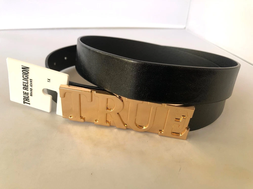 True Religion Belt TRB222PL Womens Black belt Size: 1X: From buckle to 1st hole - 39"; to last hole - 45" 2X: From buckle to 1st hole - 42.5"; to last hole - 48" Width - 30mm or 1-1/4"