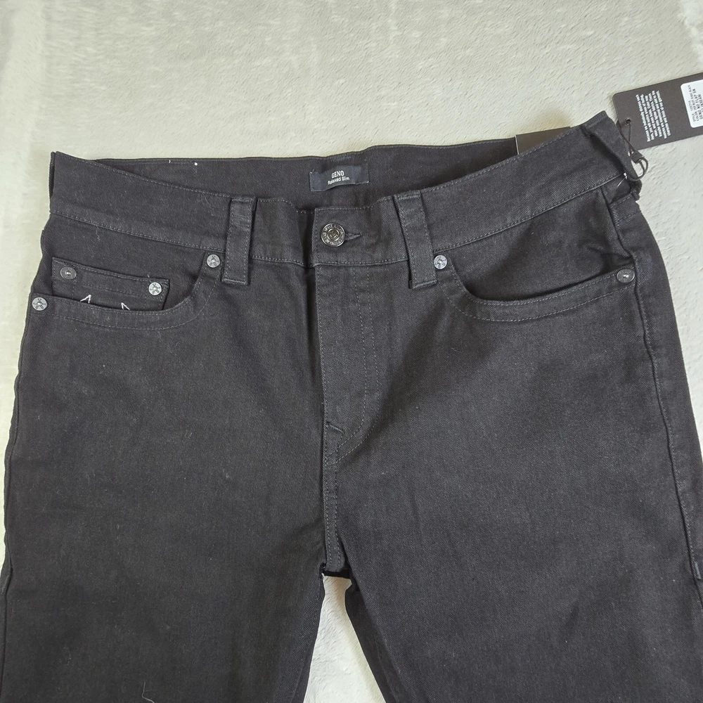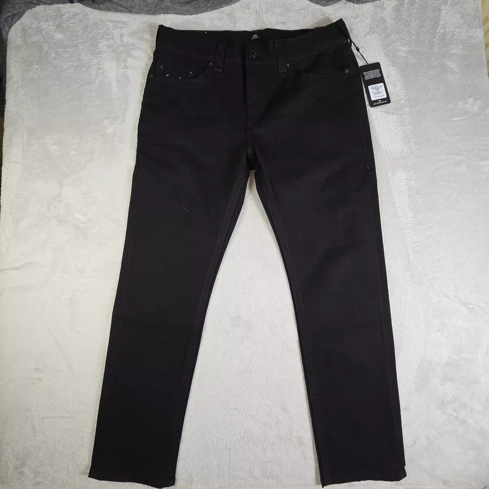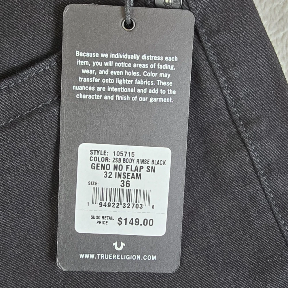 True Religion Geno No Flap SN Relaxed Slim Fit Jeans Men 36x32 Body Rinse Black ACTUAL FIT: 36X31.25" MSRP: $149 PLEASE SEE PHOTOS FOR EXACT DETAILS AND CONDITION OF THE ITEM. ALL MEASUREMENTS ARE TAKEN FLAT. PLEASE COMPARE MEASUREMENTS OF SIMILAR ITEM THAT YOU OWN TO ENSURE CORRECT FIT. WAIST: 18" HIPS: 22" INSEAM: 31.25" RISE: 12" CUFF WIDTH: 8" CONDITION: NEW WITH TAGS SHIPPING: U.S. SHIPPING IS USPS GROUND ADVANTAGE. INTERNATIONAL SHIPPING IS Ebay GLOBAL SHIPPING PROGRAM HANDLING TIME: 2 Full business days. Usually ships next day after purchase excluding weekends or holidays. FEEDBACK: Please leave feedback once you receive the item. If there is an issue with the item, please contact me and let me correct the issue before leaving feedback