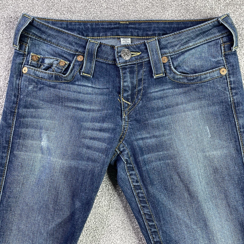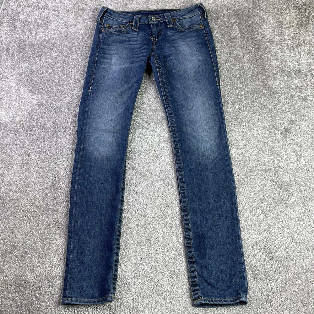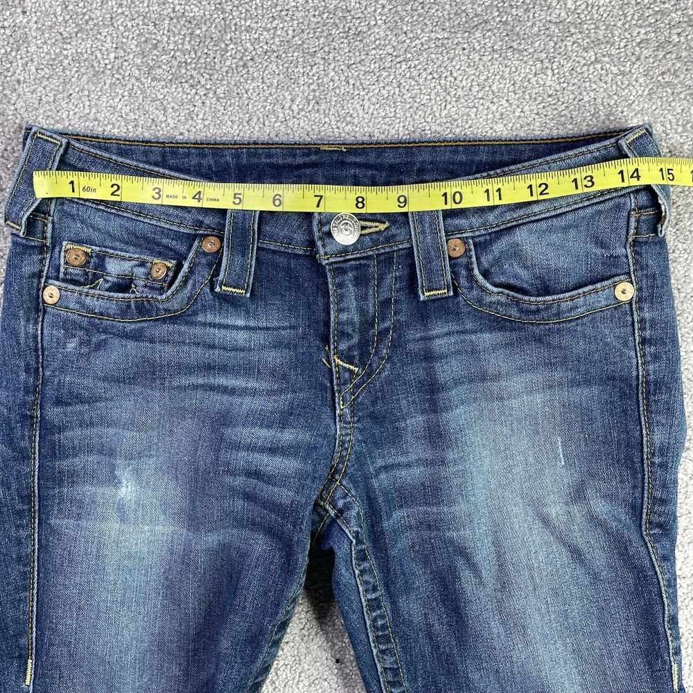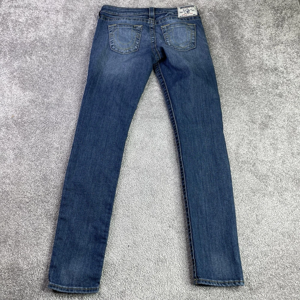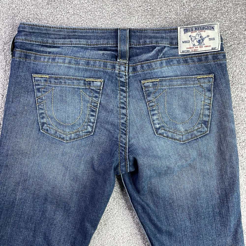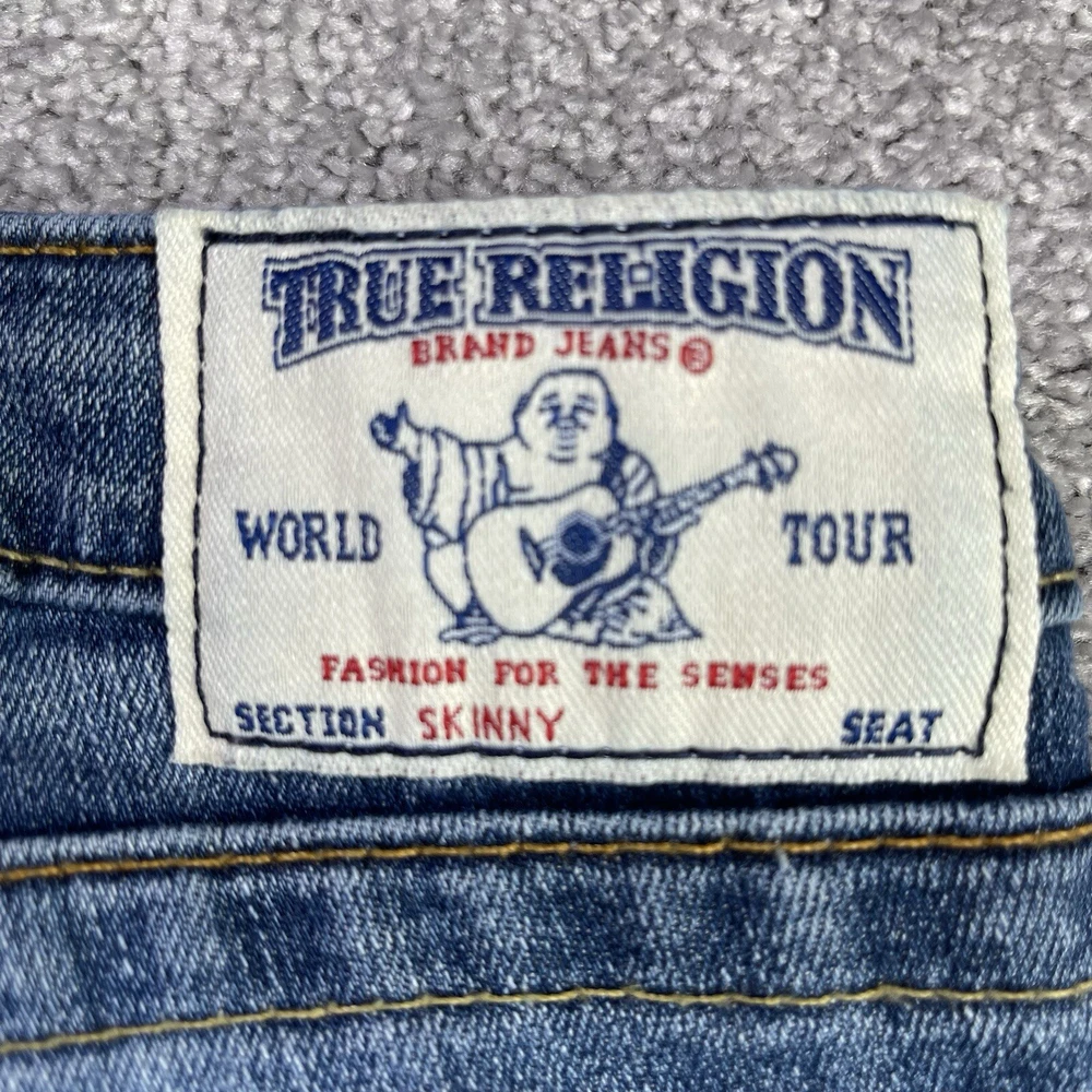Garment Care: Machine Washable Season: Fall, Spring, Summer, Winter Accents: Logo Waist Size: 27 in Fabric Wash: Dark Seller Notes: “In excellent, pre-owned condition with no flaws to note.” Model: Trur Religion Skinny Style: Skinny Fit: Regular Department: Women Size: 27 Size Type: Regular Personalize: No Type: Jeans Brand: True Religion Fabric Type: Denim Color: Blue Pocket Type: 5-Pocket Design Country/Region of Manufacture: Mexico Theme: 90s, Bohemian, City, College, Festival, Grunge, Hipster, Preppy Inseam: 31.5 in Features: Distressed, Pockets, Stretch Rise: Low (6.5-8.5 in) Pattern: Solid Material: Cotton Blend Handmade: No Product Line: True Religion World Tour Vintage: No Closure: Zip