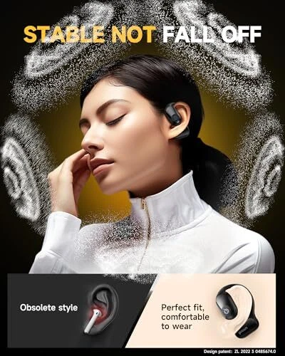 True Wireless Open Ear Headphones, 5.4 Bluetooth, Ultra Comfort Secure Black