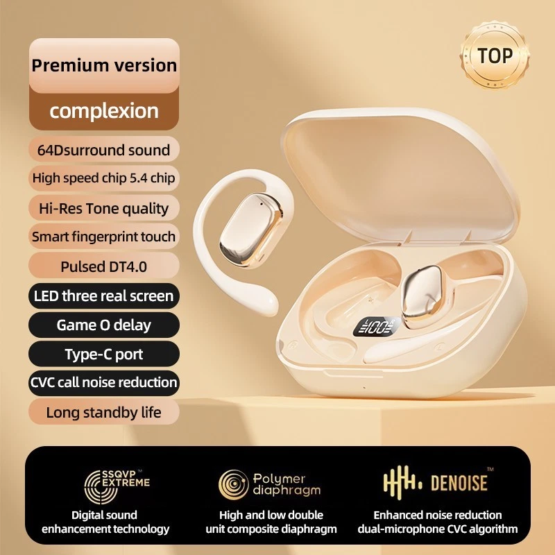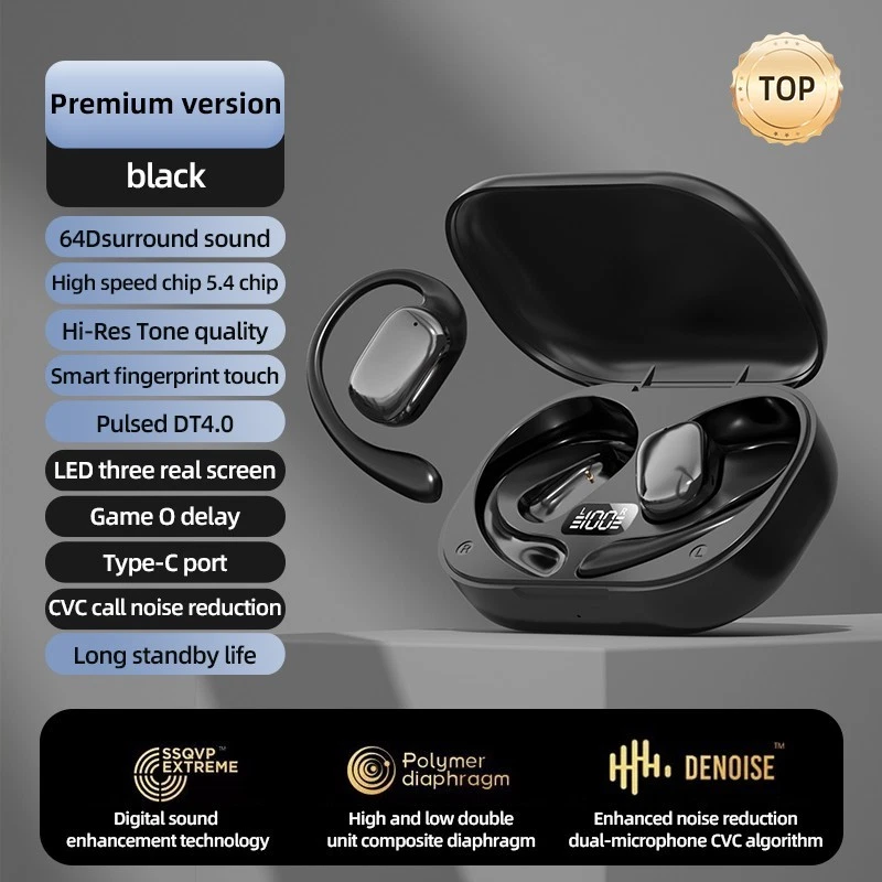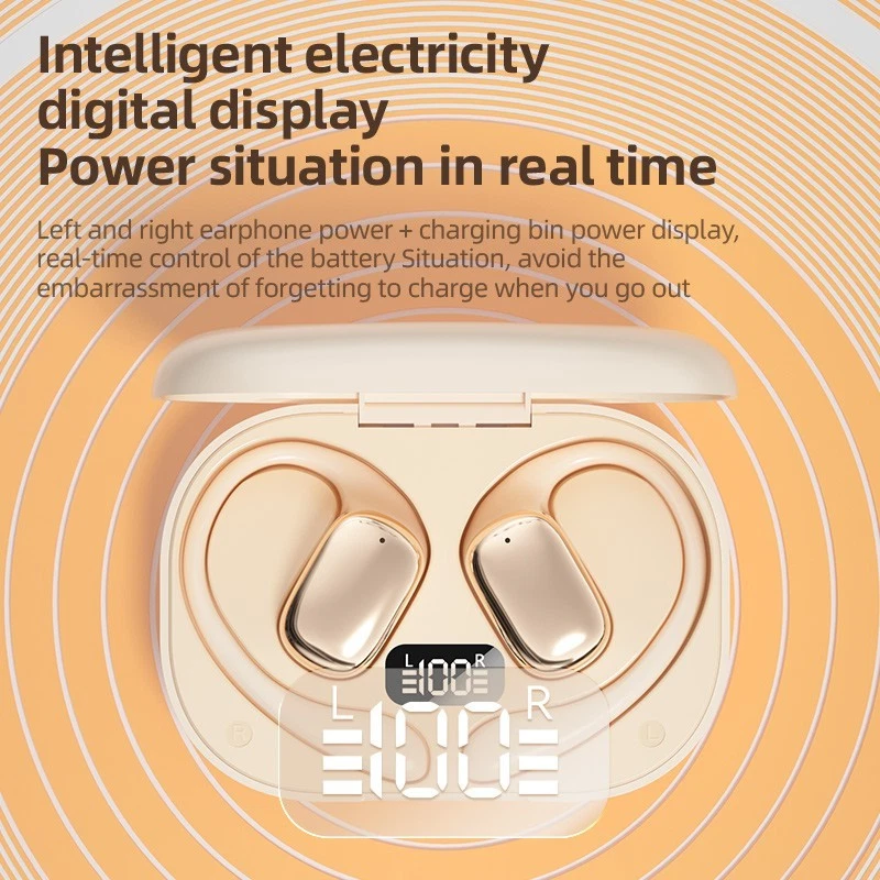 β Wireless Ear-Hook Bluetooth Earbuds β Bluetooth 5.4, LED Display, Type-C Charging πΉ Product Highlights: Bluetooth Version: V5.4 β Faster and more stable connection Wearing Style: Ear-hook β Secure and comfortable, ideal for sports Talk Time: Up to 5 hours Standby Time: Up to 120 hours Transmission Range: 10 meters Chipset: Jerry Battery (Earbuds): 30mAh Battery (Charging Case): 200mAh Charging Time: About 1.5 hours Charging Port: Type-C LED Indicator: Red while charging, blue when fully charged Smart Display: Digital battery level display on case πΉ Smart Functions: Battery level sync with your phone Low battery warning One-touch music control: play/pause, next/previous track, volume up/down Last-number redial Compact and stylish with LED battery display πΉ Packaging & Shipping Info: Single Set Weight: 78g Box Size: 9.1 Γ 3.2 Γ 11.7 cm Carton Size: 61.5 Γ 33.5 Γ 20 cm Quantity per Carton: 100 pcs Net Weight (Carton): 7.8 KG Gross Weight (Carton): 8.4 KG