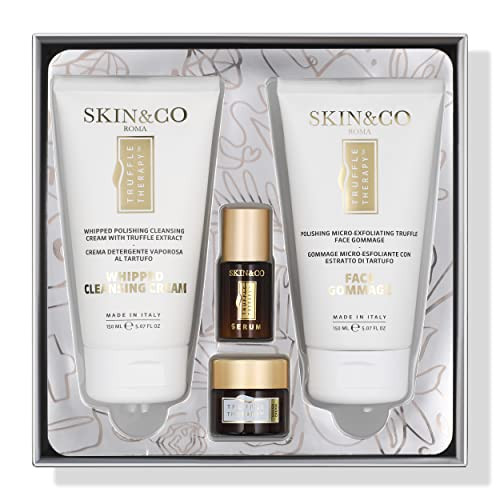Product Description Kiss dry, dull, and flaky skin goodbye! Truffle Therapy Whipped Cleansing Cream is a highly concentrated -crème cleanser formulated to deeply cleanse skin, remove makeup, dirt and impurities, effectively keeping pores free and clear from congestion and blemishes while soothing and calming sensitivity-prone complexions. Formulated with pure Black Winter Truffle Extract, Sweet Almond Oil, Mallow Leaf, and Chamomile, this gentle cleanser delivers intense hydration, nourishing moisture, while improving skin’s resilience and tone. Complete with essential fatty acids, skin’s natural moisture barrier is restored to maintain a supple and radiant complexion. A delicate exfoliating cream, with a rich texture and soothing fragrance, Truffle Therapy Face Gommage is a lush formula combining the best of the iconic Mediterranean lifestyle and the luxury Italian spa experience. A beauty cabinet staple, the Truffle Therapy Face Gommage features Sweet Almond Oil, gentle Apricot , and our unique and exclusive Black Winter Truffle Extract, which has a high concentration of Superoxide Dismutase – a powerful free-radical scavenger that reduces the signs of aging. Gently buff away and erase dull, lackluster skin revealing a more luminous and healthy complexion. Brand Story offers a variety of Natural Skincare Products, Anti-Aging Serums, Potent Moisturizers, Delicious Shower Gels, Natural and Effective Body Lotions.
