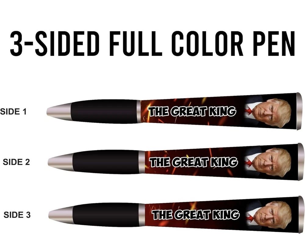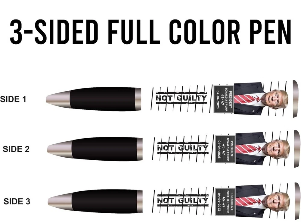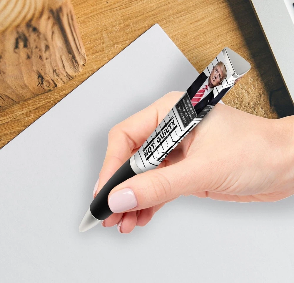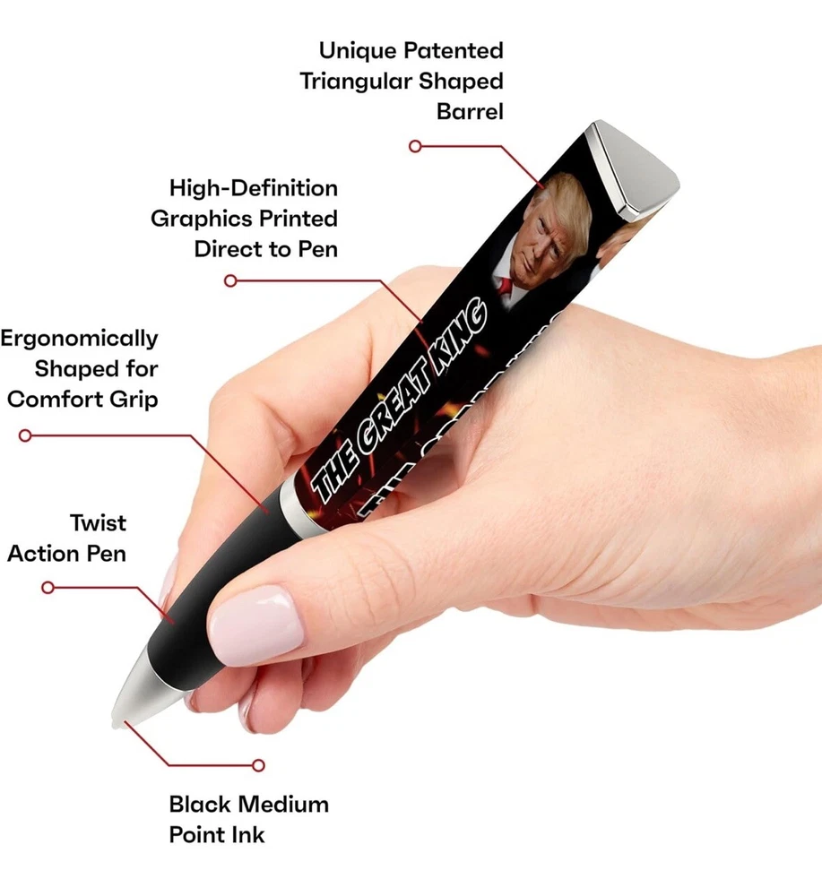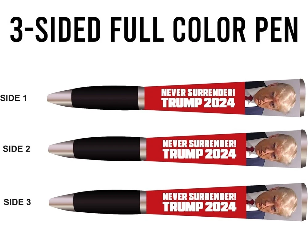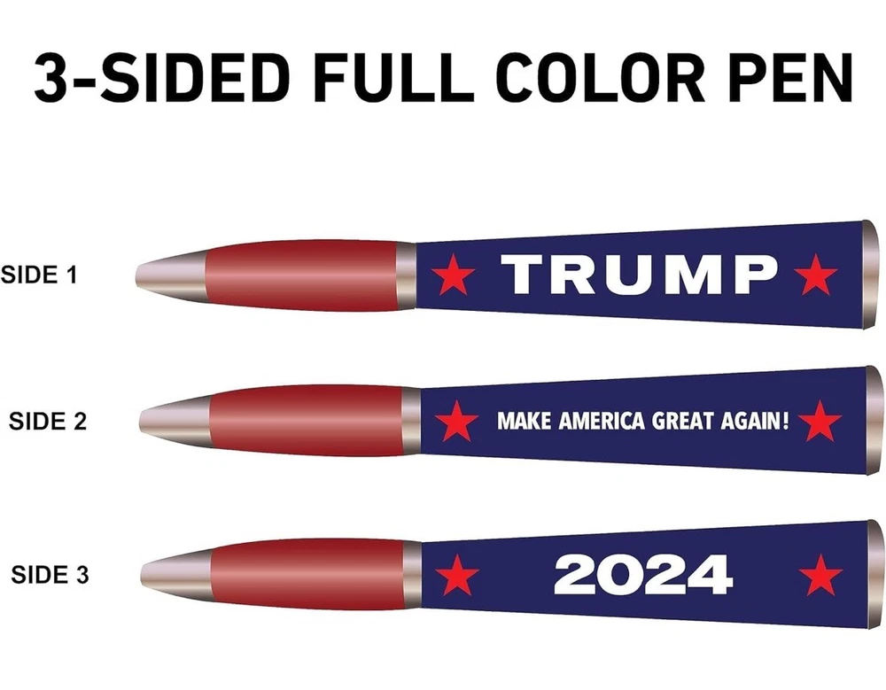 Trump 2024 Ballpoint Pen - MAGA Collectors Set, Gift for Men & Women Celebrate patriotism and support Donald Trump with this stylish Trump 2024 Ballpoint Pen! Designed with a sleek black grip and bold MAGA branding, this three-sided pen is a functional and collectible item for fans of the 45th President. Features: • Unique Design: Features a “Trump 2024” logo with a bold and professional look. • Comfortable Grip: Black grip ensures smooth, easy writing. • Collector’s Item: Perfect for Trump supporters and memorabilia collectors. • High-Quality Build: Durable and imprinted in the USA for lasting use. • Great Gift Idea: Ideal for men and women, whether for birthdays, holidays, or as a keepsake. Show your support and make a statement with this unique pen that’s perfect for daily use or as part of a memorabilia collection!