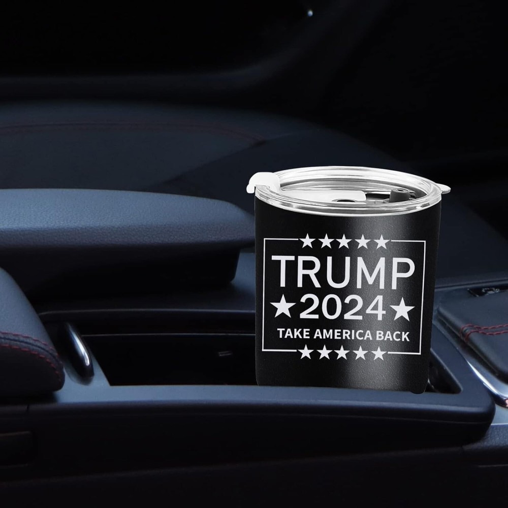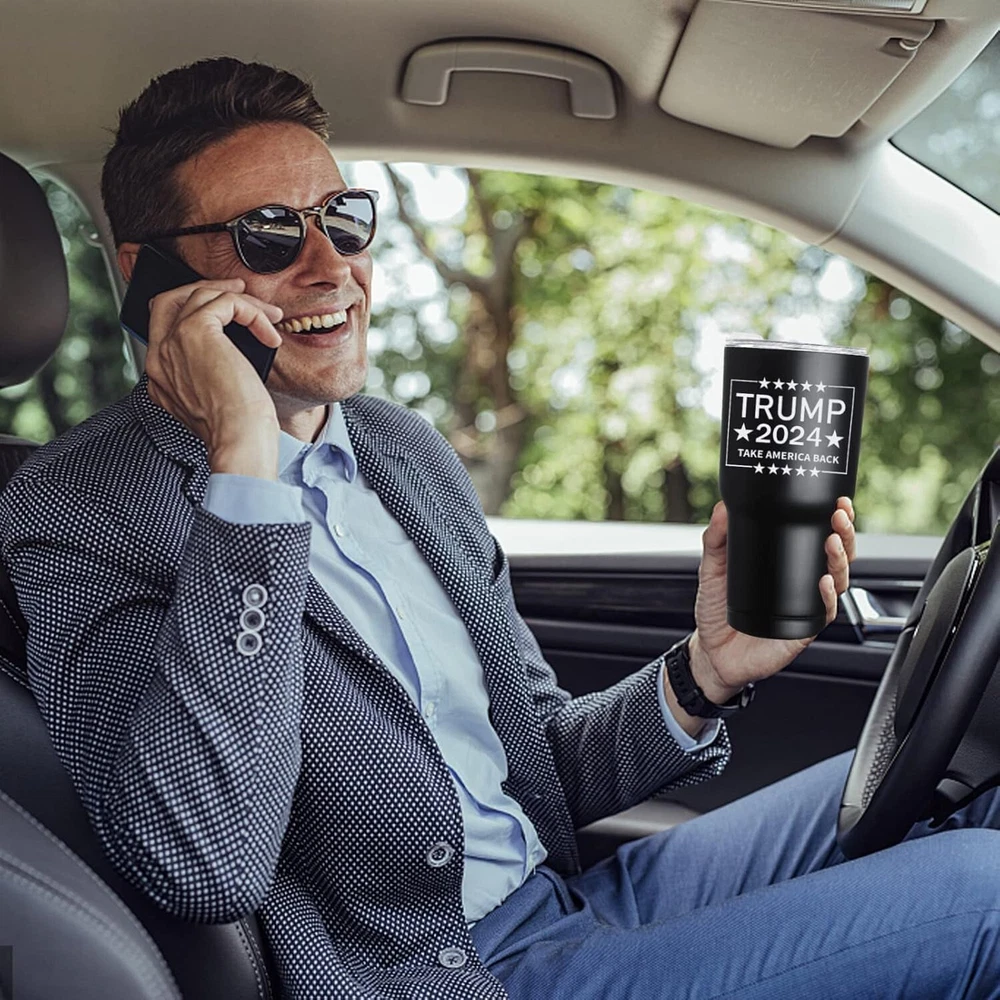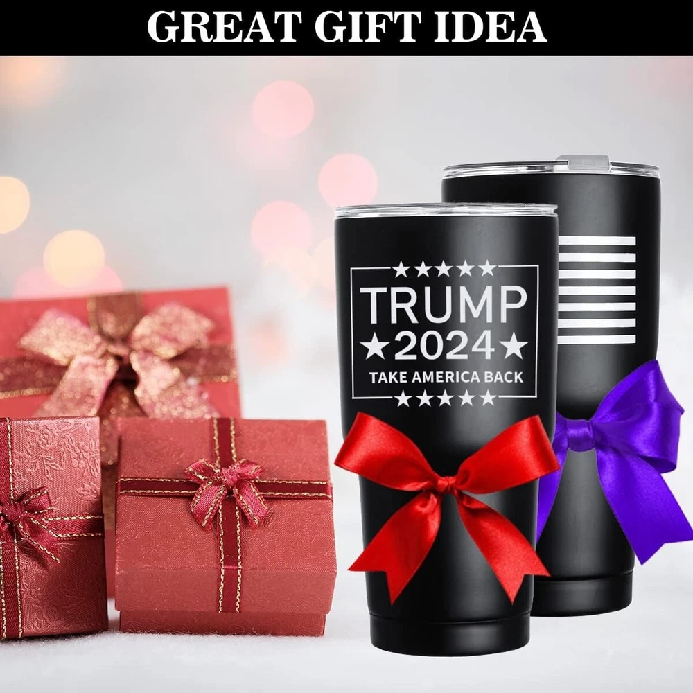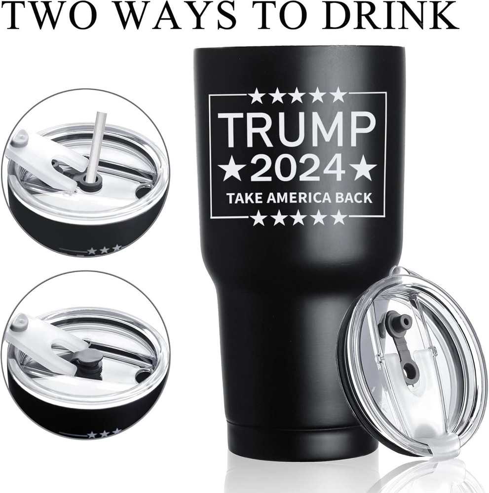 Trump 2024 Take America Back Tumbler with American Flag,30oz Stainless steel Coffe Mug,Double Wall Insulated Tumbler for Home Office Outdoor Works Ice Drinks and Hot Beverage DOUBLE WALL VACUUM INSULATED :This 30oz trump tumbler is made of premium 18/8 food grade stainless steel,so the insulated tumbler can keep beverage to stay hot for 6 hours and cold for 12 hours. MULTIFUNCTIONAL LID:This splash lid prevents to spill and leak.So you needn’t to worry about drinks stain on shirts or tables again.In addition,there is a straw hole on the lid.Dishwasher safe and BPA free. UNIQUE GIFT :Trump 2024 Take America Back Tumbler is a unique gift for Trump supporter.On the one side is the great American flag and on the other side is the voice of Trump supporters. CUP HOLDER FRIENDLY :This trump tumbler has a unique bottom design that makes it suitable for most car cup holders, making it easy to carry in various occasions. EASY TO CLEAN: This trump tumbler 2024 has a wide mouth design, not only the taste of drinking comfortable, but also very easy to wash by hand.Moreover it can be washed in the dishwasher.