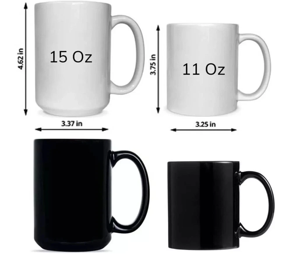 We are excited to present our premium mug collection, available in two versatile sizes: 11oz and 15oz. These mugs are perfect for savoring your favorite coffee, tea, or any other beverage. **Printed and Shipped from the USA** Our mugs are proudly printed and shipped from the USA, ensuring the highest quality and fastest delivery. Each design is produced using state-of-the-art printing machines, guaranteeing vibrant and long-lasting images. Enjoy the clarity and precision of every detail on our mugs, made possible by advanced American technology. **Natural Ceramic Material** Crafted from natural ceramic, our mugs are safe for your health and incredibly durable. The ceramic material not only ensures long-lasting use but also retains heat efficiently, making your drinks taste better and stay warmer longer. **Safe for Dishwasher and Microwave** Designed for convenience, our mugs are safe to use in both dishwashers and microwaves. This feature saves you time and effort, allowing you to easily clean and reheat your beverages without any hassle. **A Thoughtful Gift** These mugs are more than just drinkware—they're thoughtful gifts for your loved ones and family. Express your love and care with a personalized mug featuring a special memory, a heartfelt message, or a favorite image. A customized mug is a small yet meaningful gesture that will bring warmth and happiness to the recipient. Choose between our 11oz or 15oz sizes today and experience the superior quality and craftsmanship of our products, proudly printed and shipped from the USA. Make every sip a memorable moment with our exceptional mugs.
